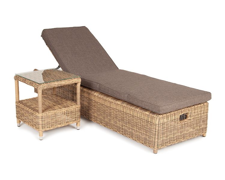 Дополнительно к шезлонгу прилагаются мягкие подушки из полиэфирной ткани, которая обладает стойкостью к ультрафиолету, воде. Съемные чехлы серого цвета. Для удобства можно отрегулировать наклон спинки лежака.
