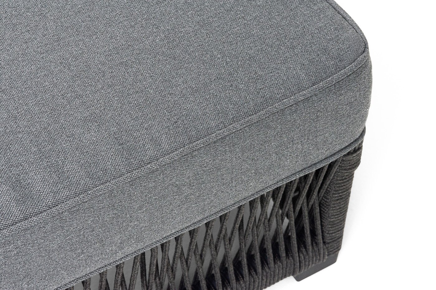 Каркас вручную оплетен темно-серым роупом - эластичными синтетическими лентами из высокопрочных полиэфирных волокон.
