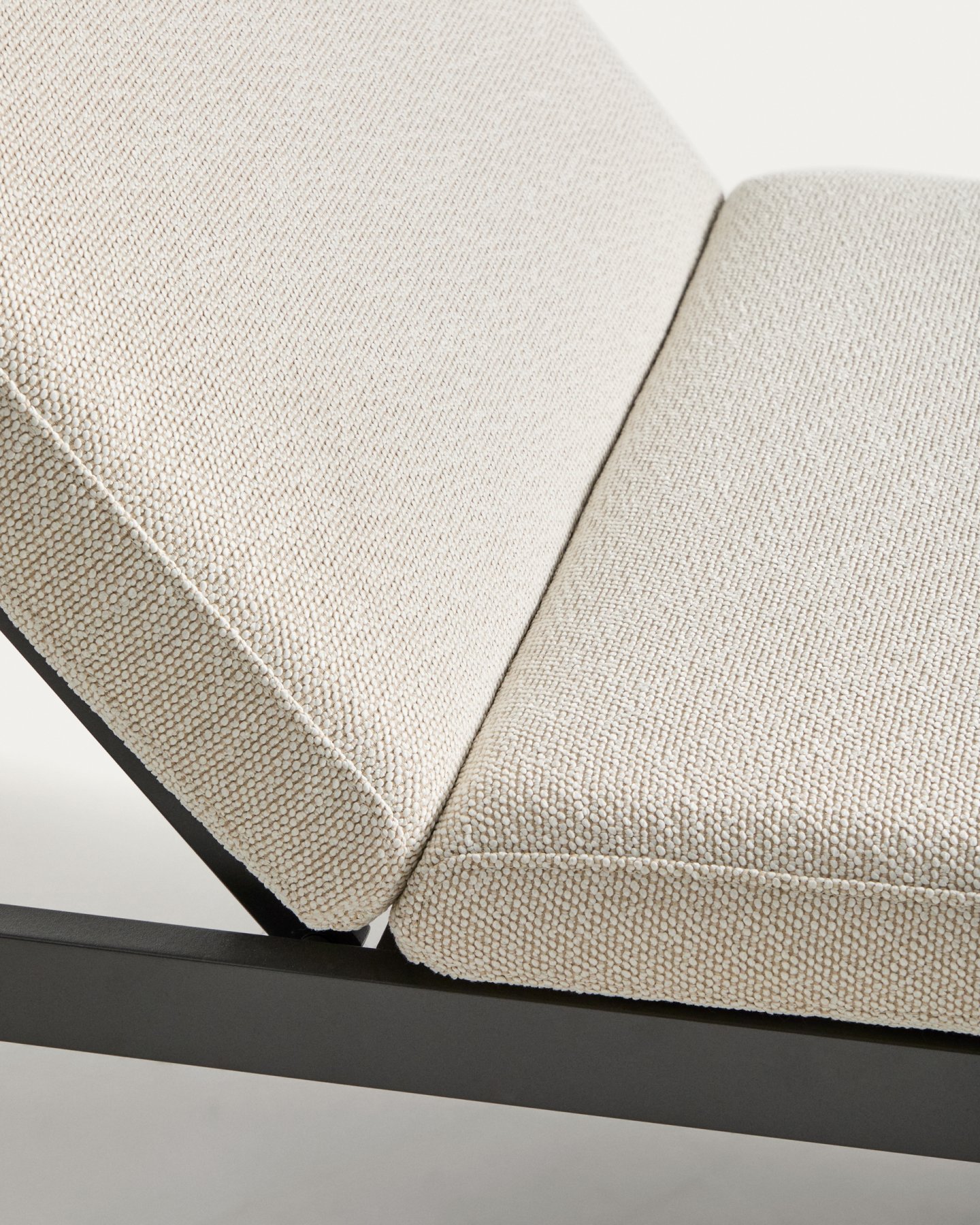 Шезлонг Kionia имеет прочную, но легкую алюминиевую конструкцию, разработанную для удобной транспортировки и использования на открытом воздухе. Подушки со съемными чехлами обеспечивают комфорт и практичность. Мы рекомендуем убирать их на хранение в дождливые дни, чтобы сохранить ткань в хорошем состоянии. Спинка имеет четыре положения, позволяющие отрегулировать положение для более комфортного отдыха. Колесики на основании облегчают перемещение и позволяют адаптировать шезлонг к месту установки в зависимости от потребностей пространства.