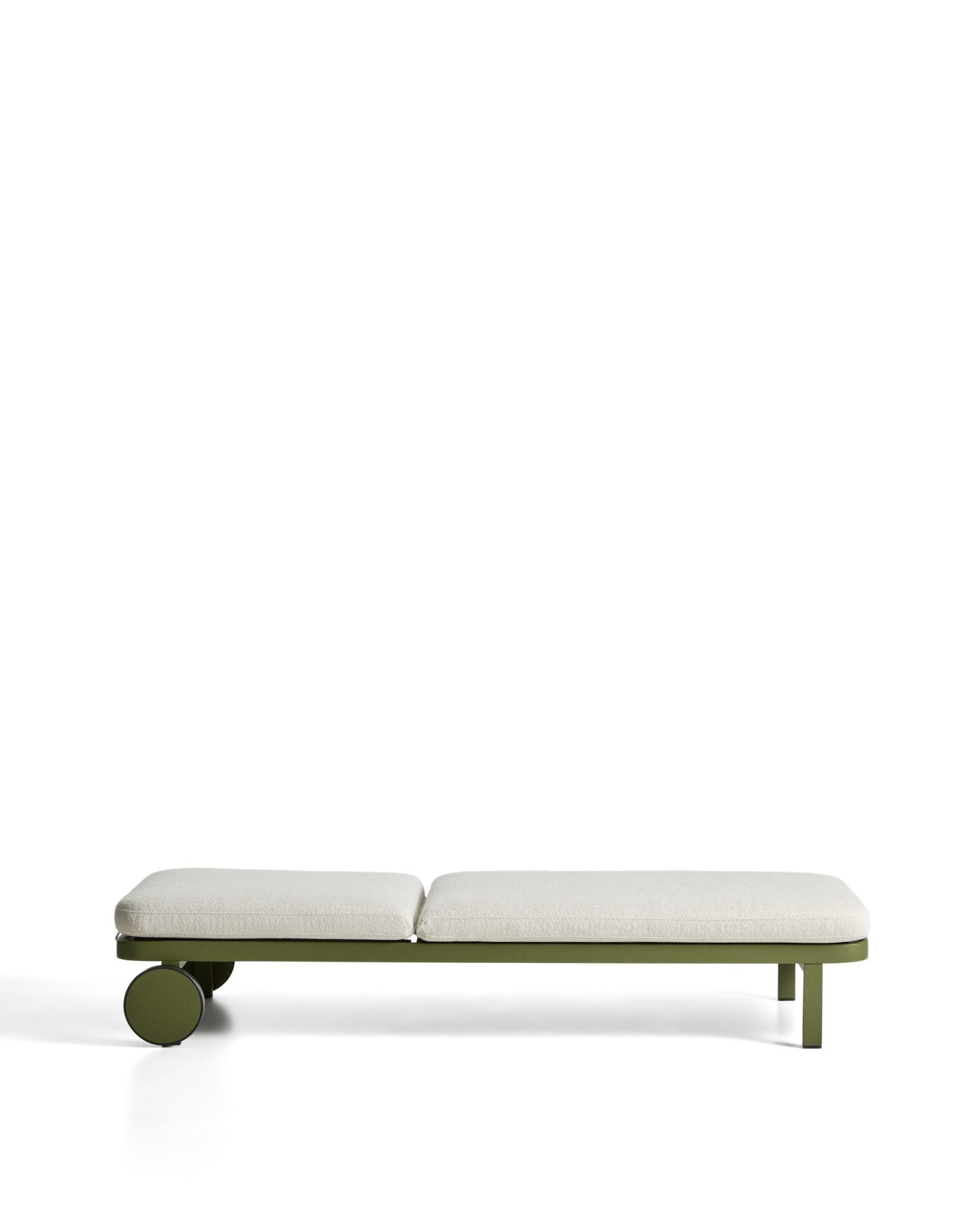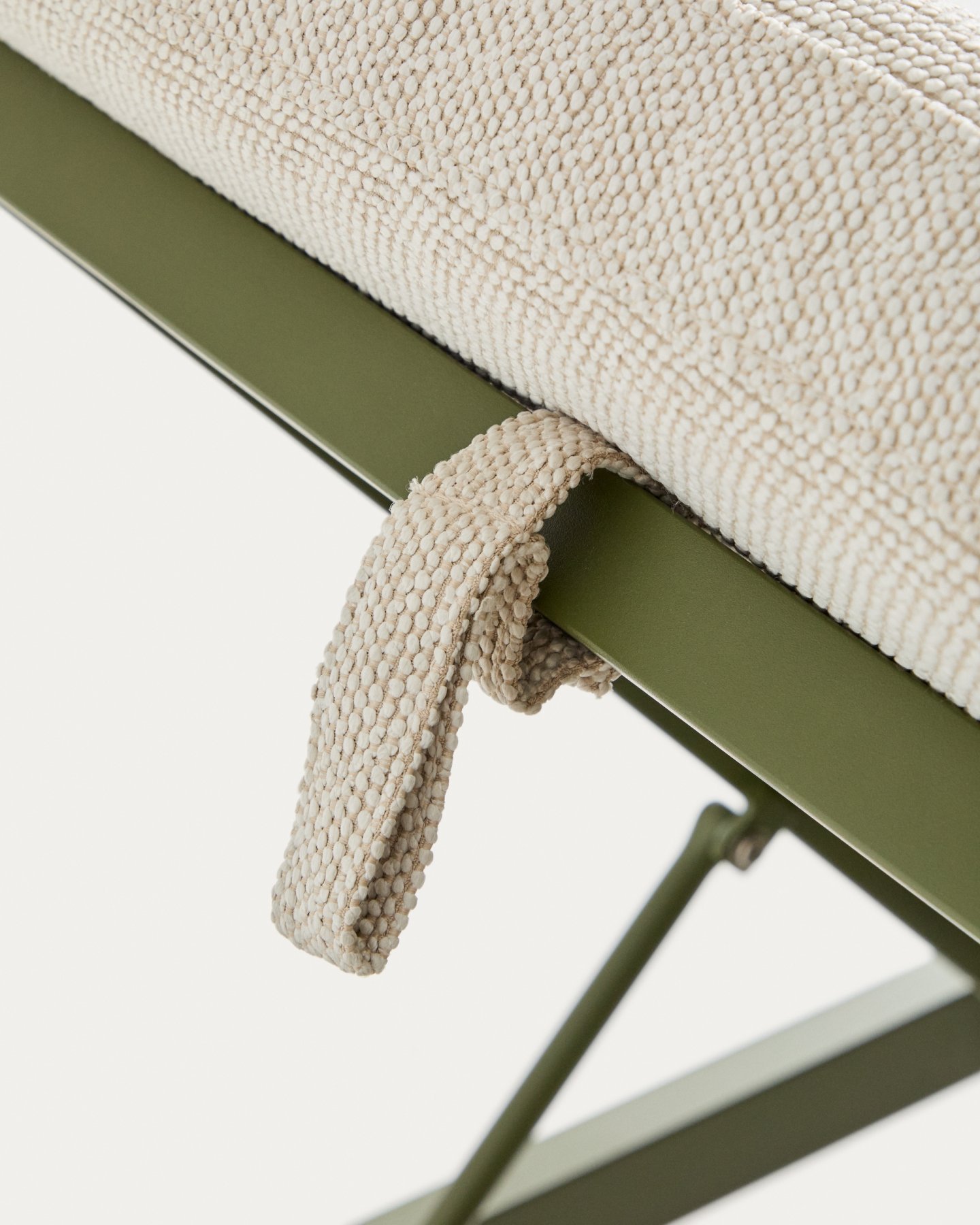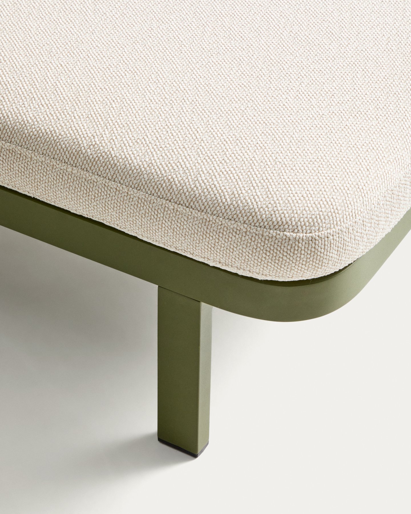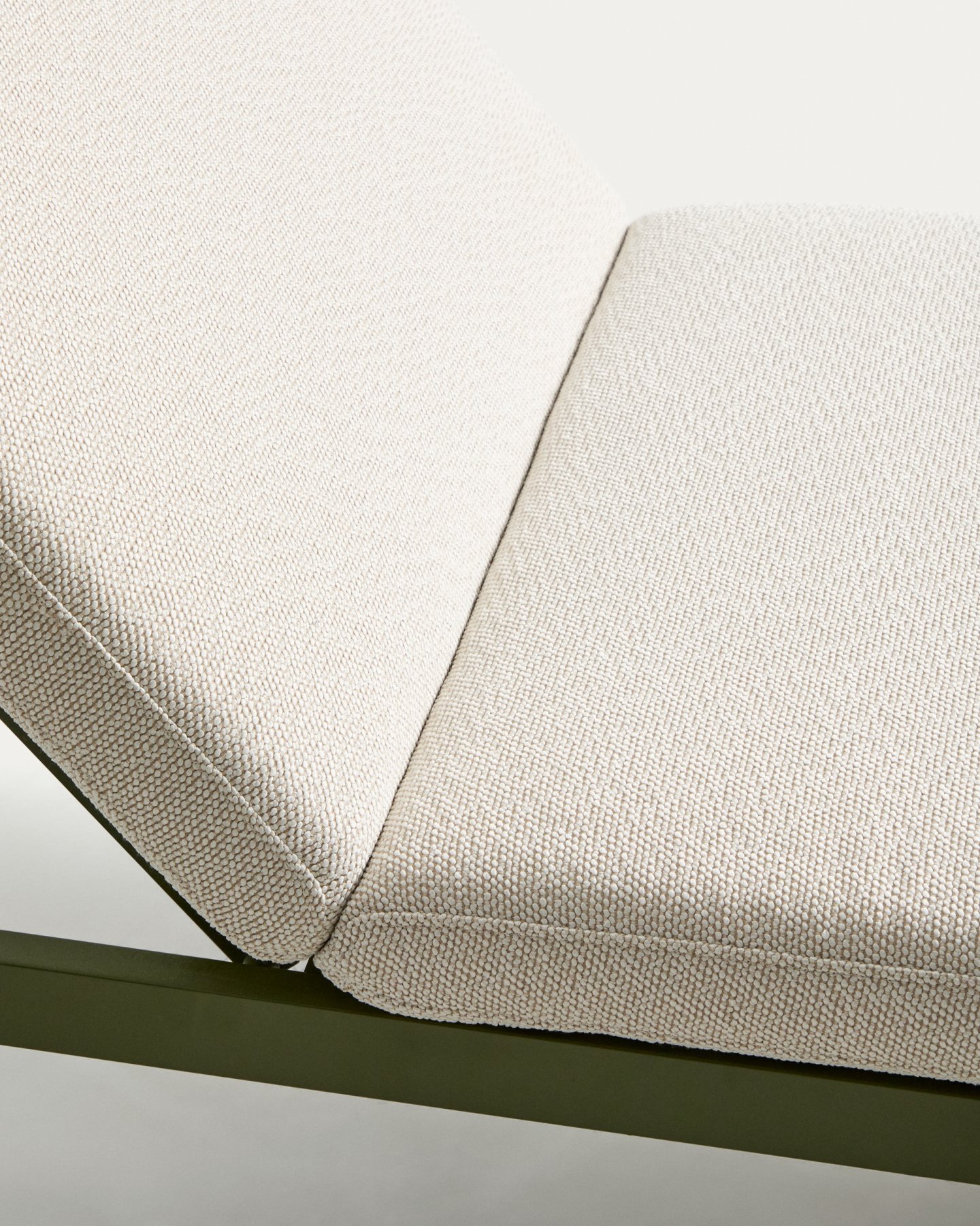 Шезлонг Kionia имеет прочную, но легкую алюминиевую конструкцию, разработанную для удобной транспортировки и использования на открытом воздухе. Подушки со съемными чехлами обеспечивают комфорт и практичность. Мы рекомендуем убирать их на хранение в дождливые дни, чтобы сохранить ткань в хорошем состоянии. Спинка имеет четыре положения, позволяющие отрегулировать положение для более комфортного отдыха. Колесики на основании облегчают перемещение и позволяют адаптировать шезлонг к месту установки в зависимости от потребностей пространства.