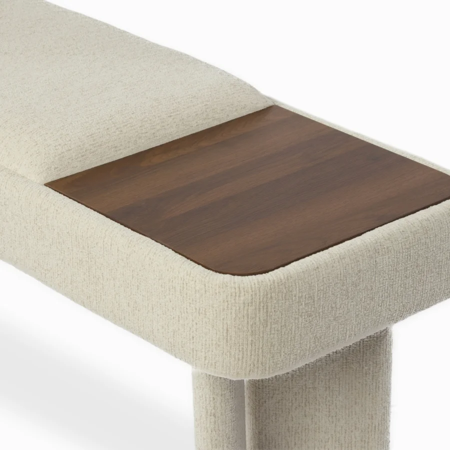 Материал обивки: обивка из ткани в нежном бежевом цвете добавляет мягкости и комфорта, создавая атмосферу уюта. Ткань устойчива к износу и легко чистится, что делает скамью идеальной для повседневного использования.