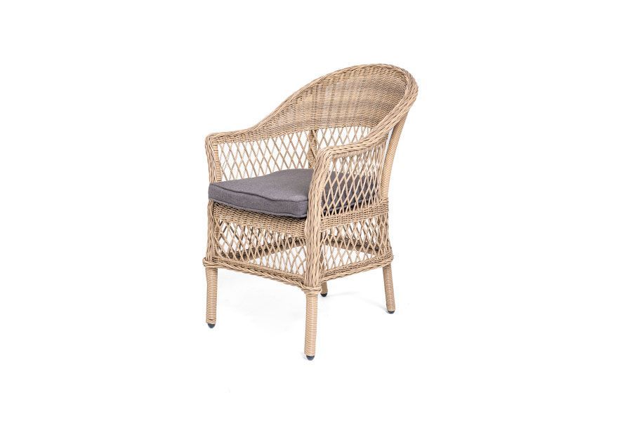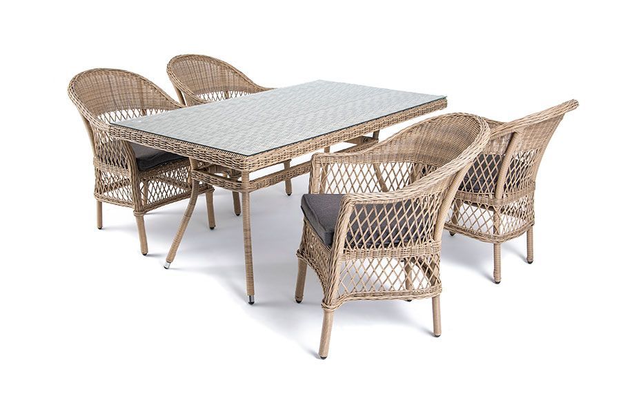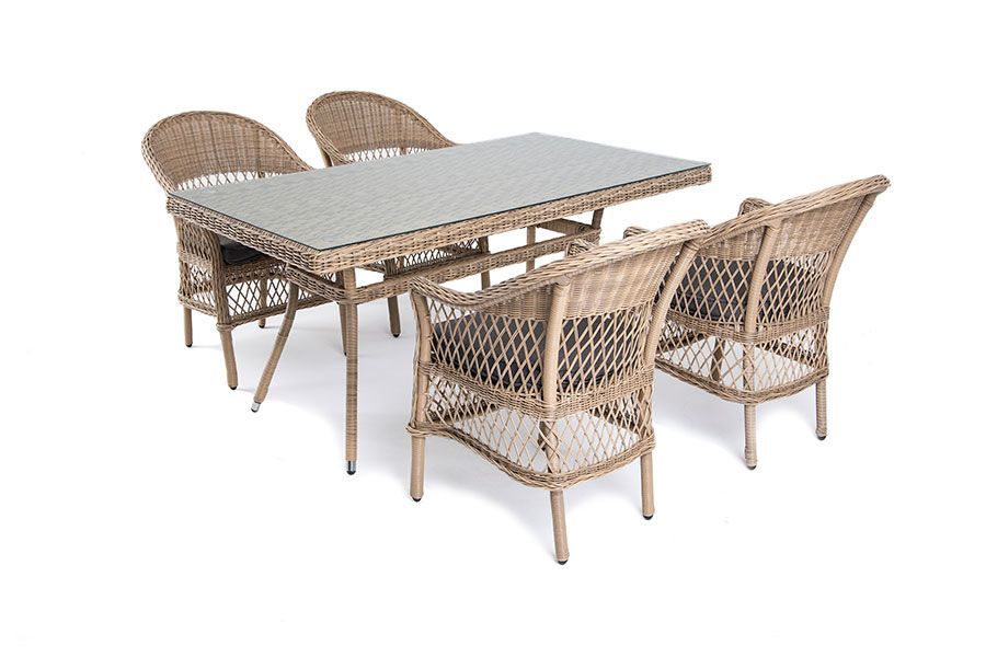 "Сицилия" плетеный стул из искусственного ротанга, цвет соломенный 4шт. 590Х640Х820, "Латте" плетеный стол из искусственного ротанга 160х90см, цвет соломенный 1шт. 1 600Х900Х750,