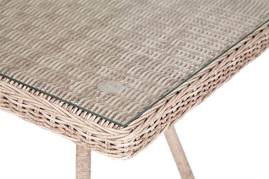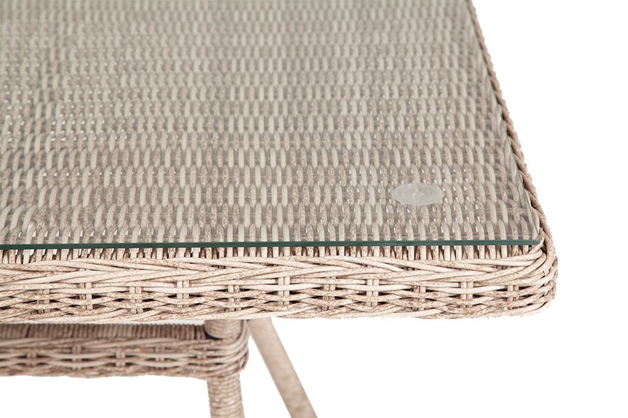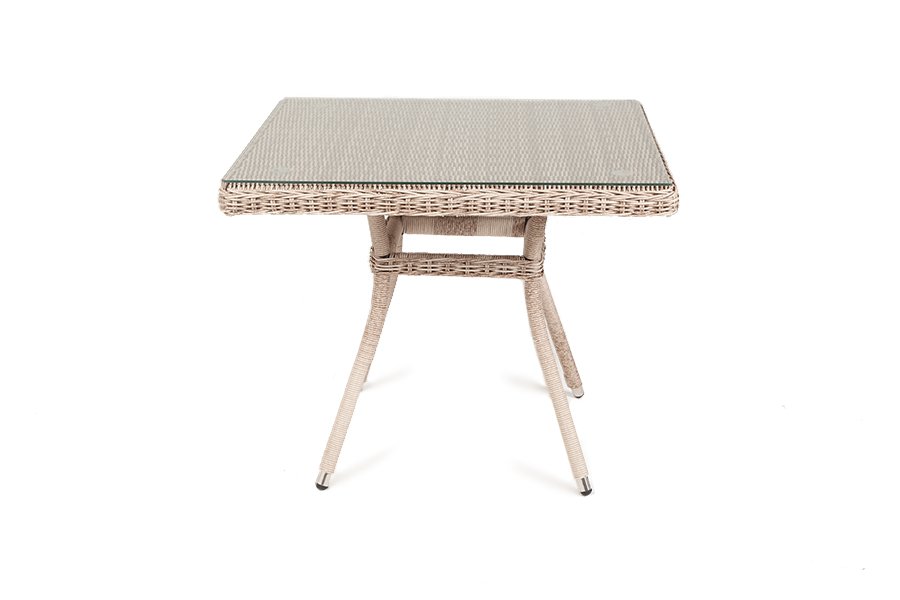 В основе стола скелет из алюминия, столешница выполнена из ударопрочного стекла толщиной 5 мм.