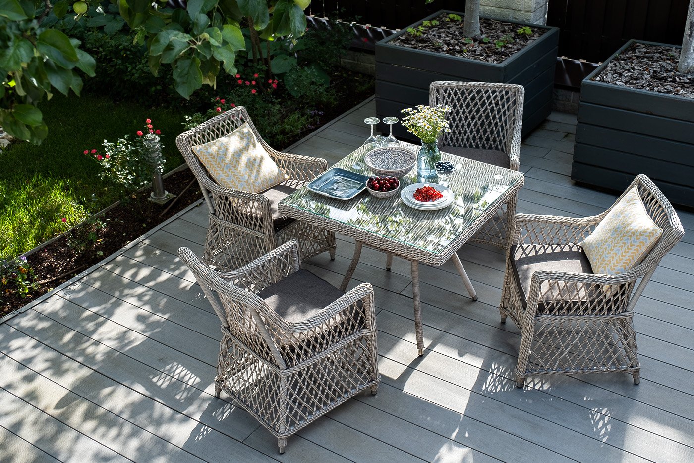 Габариты: 900×900×750 мм, которые позволяют уместить до четырех человек.