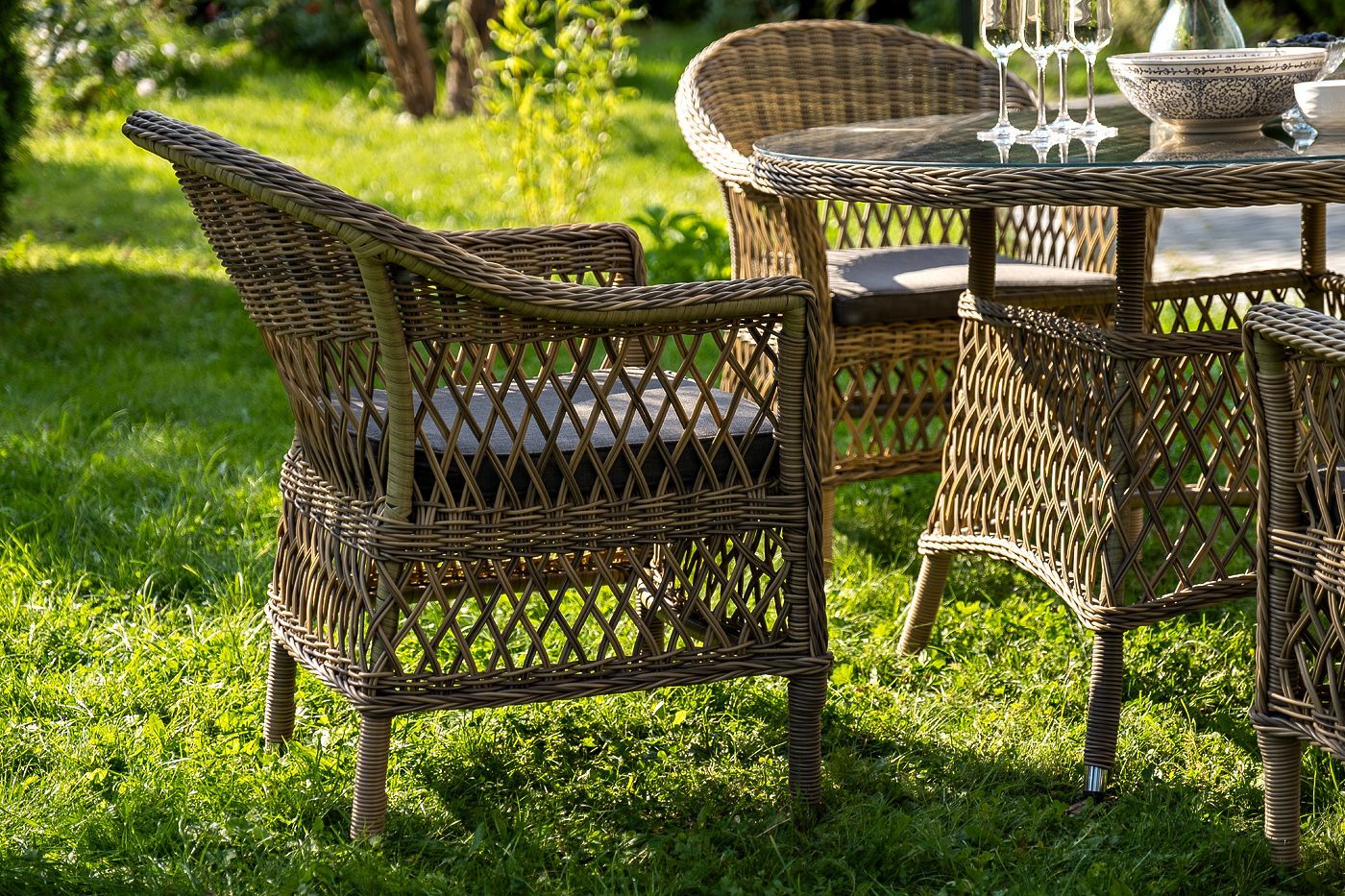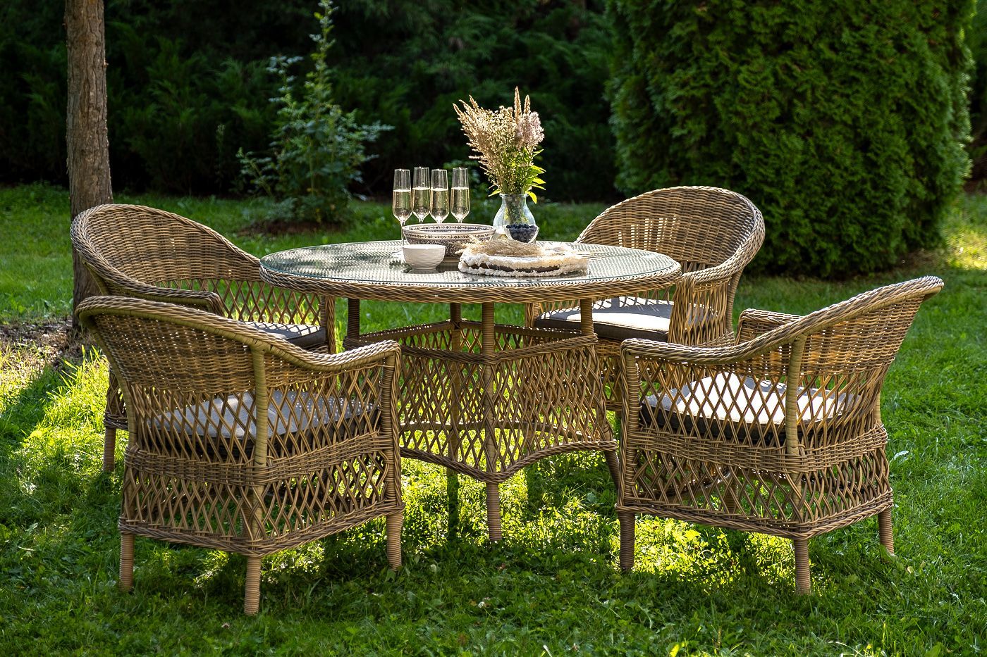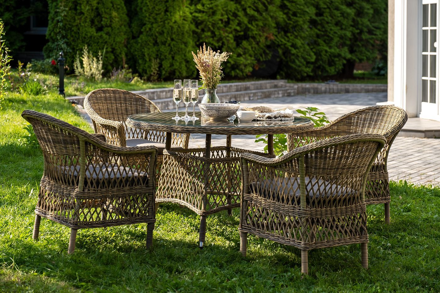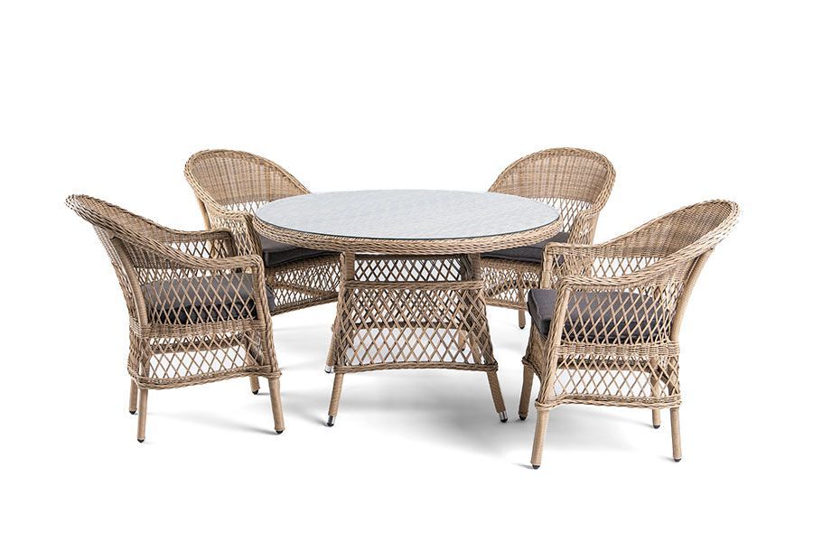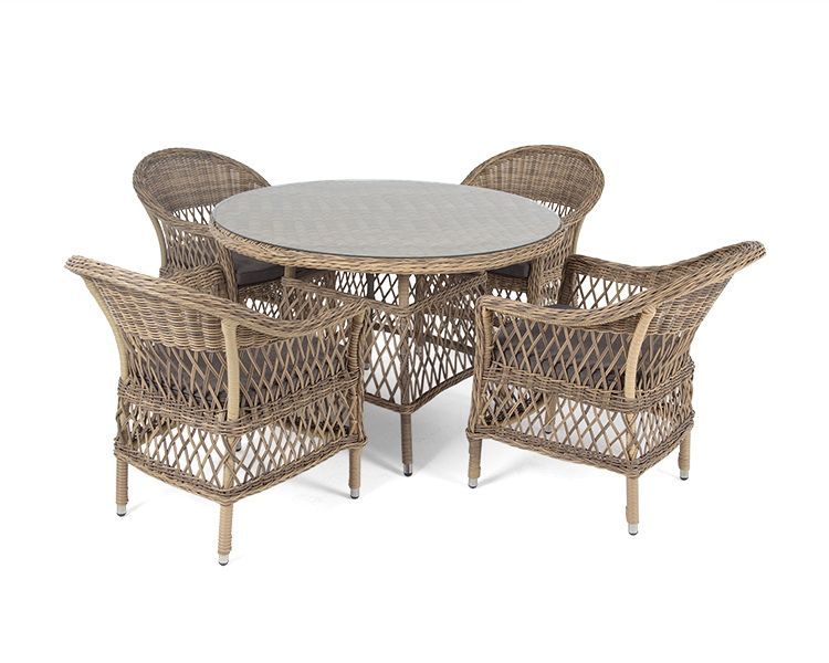 "Сицилия" плетеный стул из искусственного ротанга, цвет соломенный 4шт. 590Х640Х820, "Эспрессо" плетеный круглый стол, диаметр 118 см, цвет соломенный 1шт. 1 180Х1 180Х750,