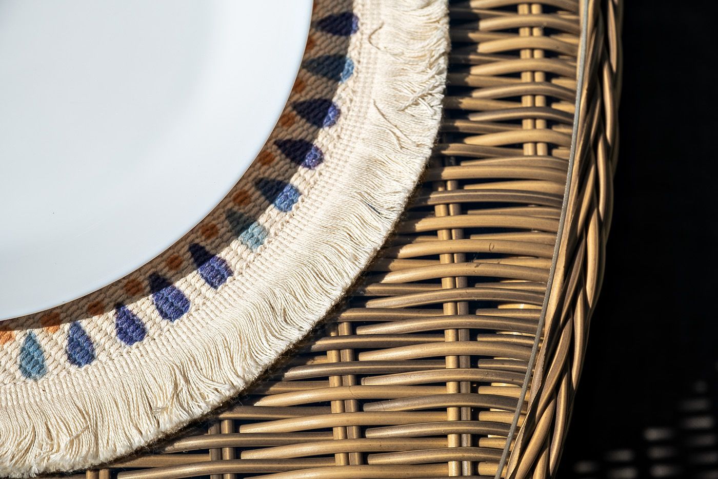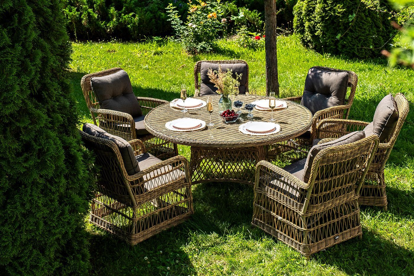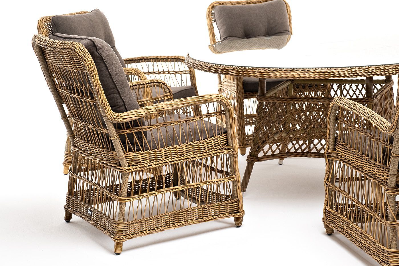 "Эспрессо" плетеный круглый стол, диаметр 150 см, цвет соломенный 1шт. 1 500Х1 500Х750, "Цесена" кресло плетеное из искусственного ротанга, цвет соломенный 6шт. 600Х800Х910,