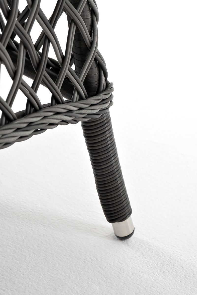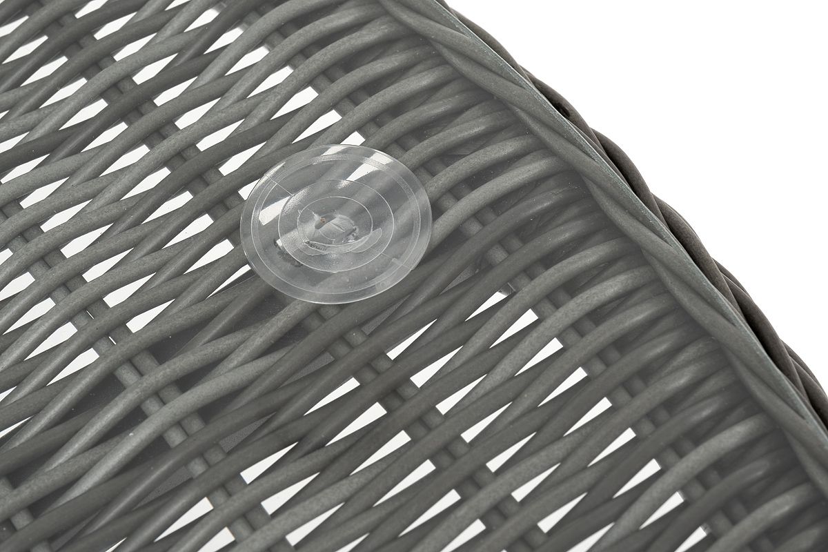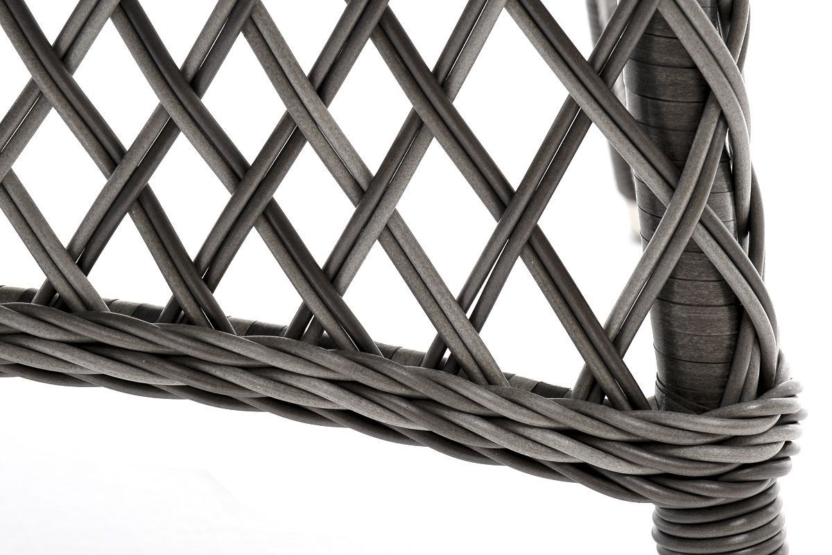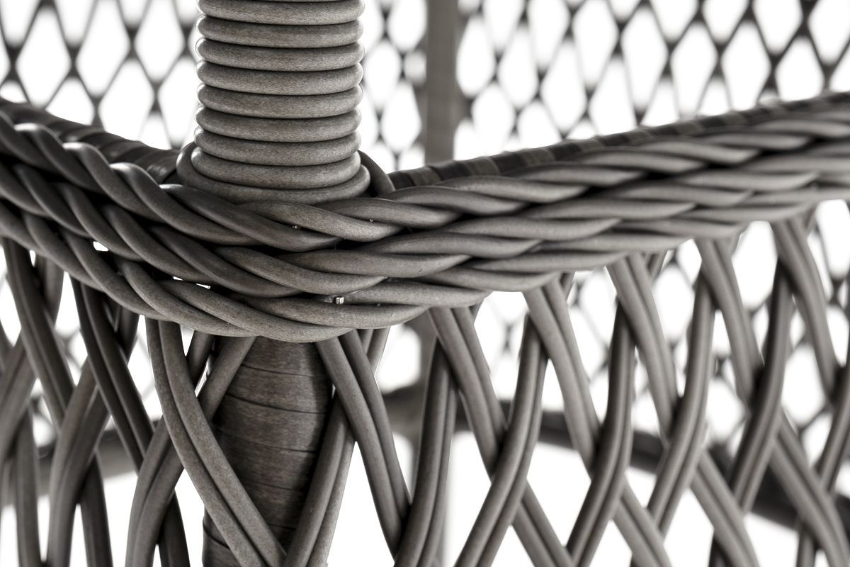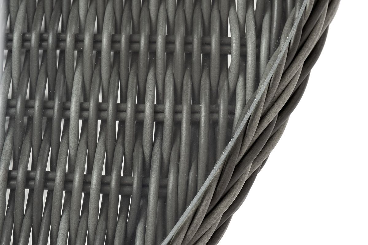 Каркас изготовлен из прочного и очень легкого алюминия. Вручную оплетен синтетическим ротангом натурального графитового оттенка.