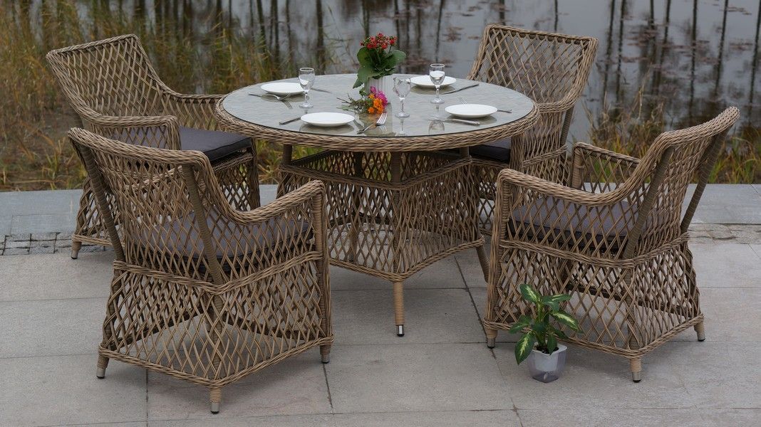 Диаметр плетеного стола – 1180 мм, высота - 750 мм.