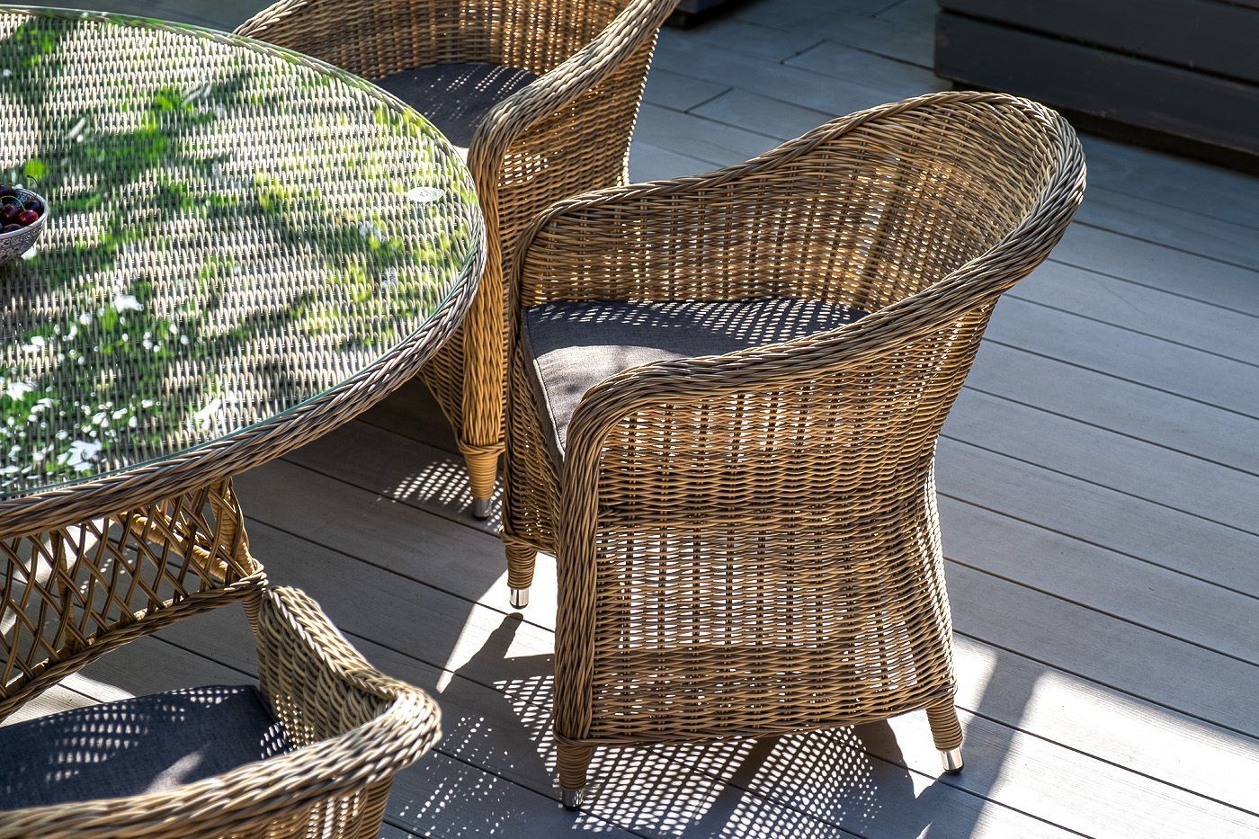 В дополнение к обеденному столу можно приобрести ротанговые кресла серии «Латте» в аналогичном цвете.