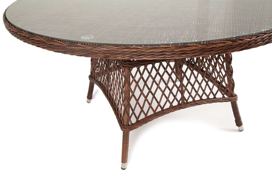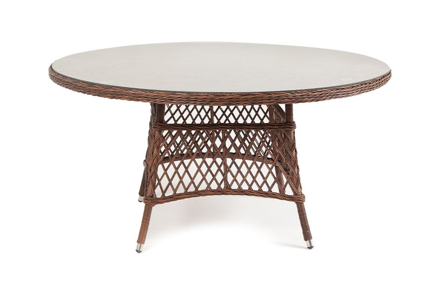 Каркас изготовлен из прочного алюминия, который вручную обвит круглым искусственным ротангом коричневого цвета.