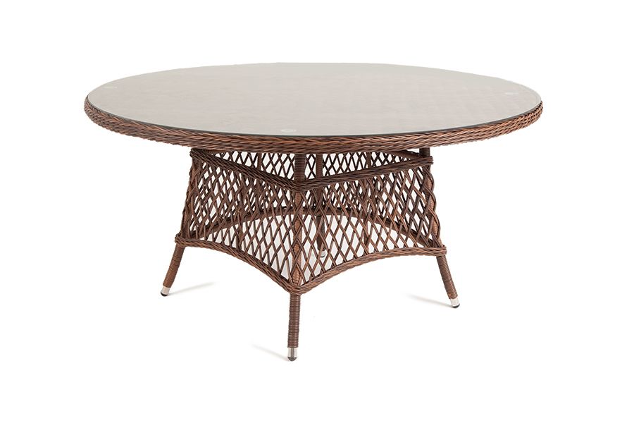 Диаметр рабочей поверхности 150 см, а высота составляет 75 см. Плоскость защищена ударопрочной стеклянной 5 мм столешницей.