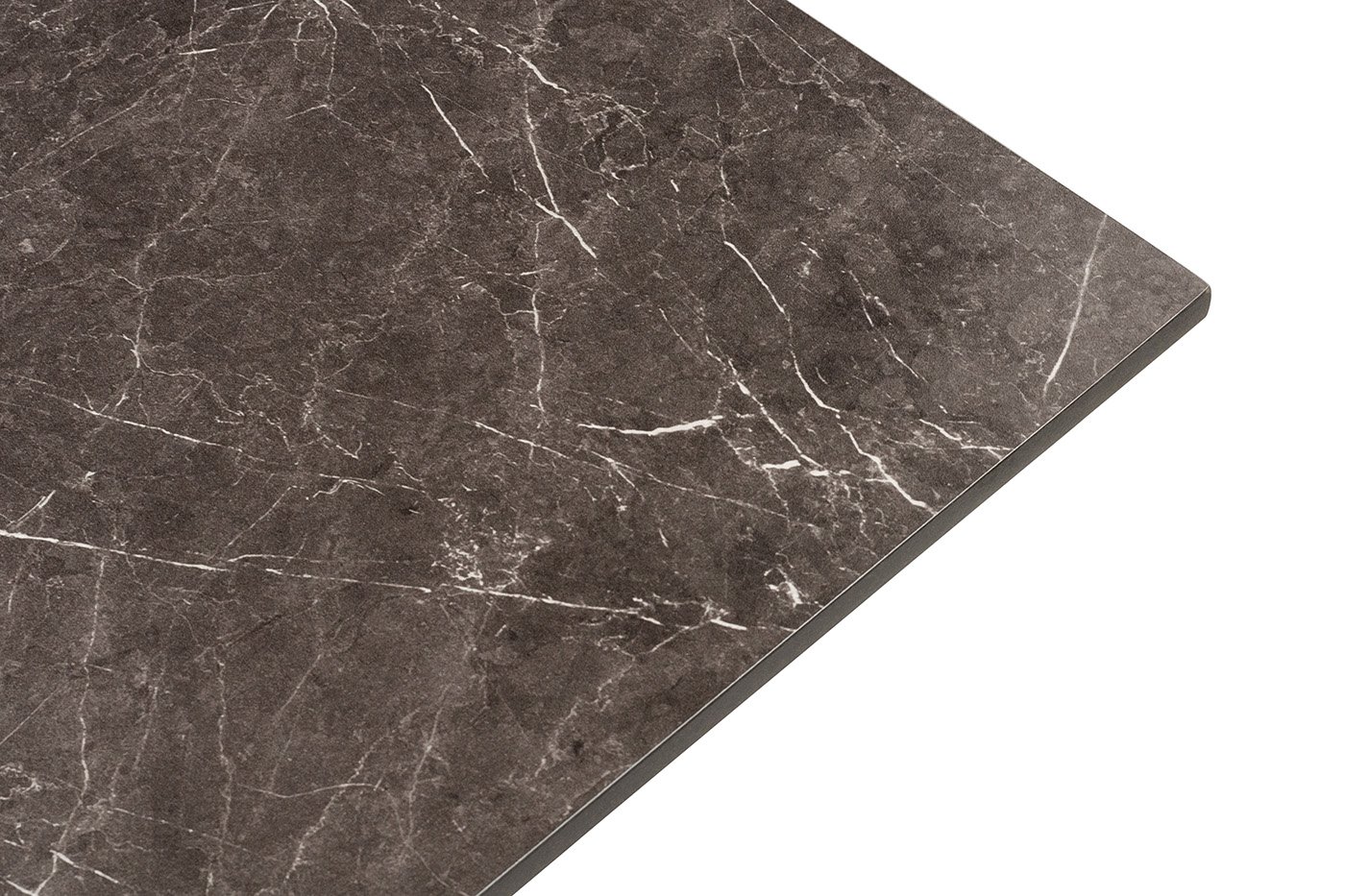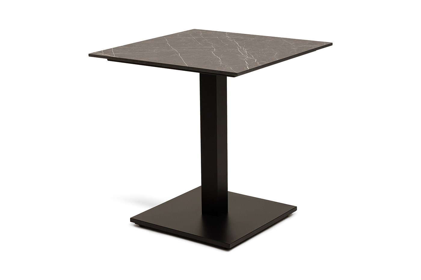 Подстолье изготовлено из чугуна черного цвета, с рамкой для крепления столешницы и широким основанием 400×400 мм.