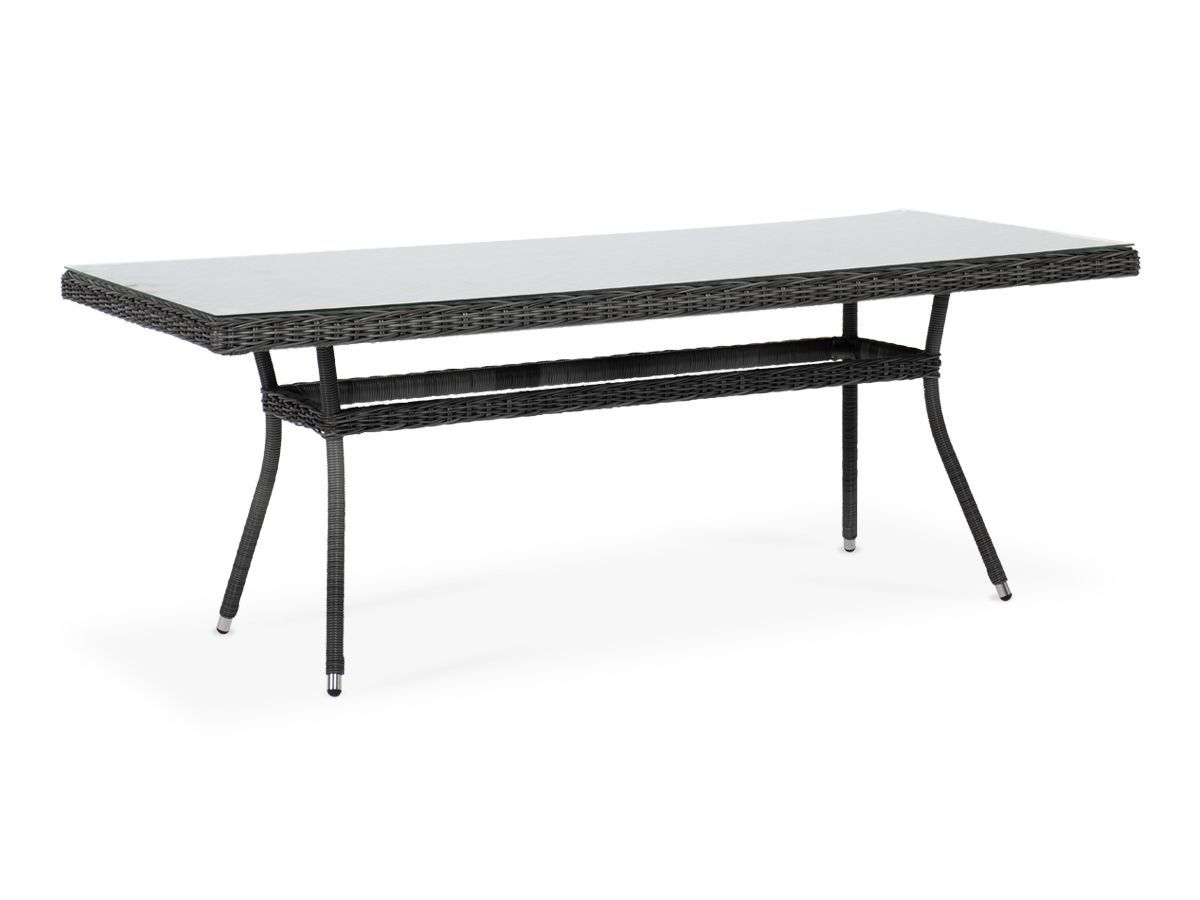 Каркас изделия изготовлен из прочного, но очень легкого алюминия, оплетенного вручную искусственным ротангом круглого плетения цвета "графит". Это долговечный материал, устойчивый к переменам погоды, атмосферным осадкам, прямым солнечным лучам. Благодаря ему стол можно использовать круглогодично под открытым небом.