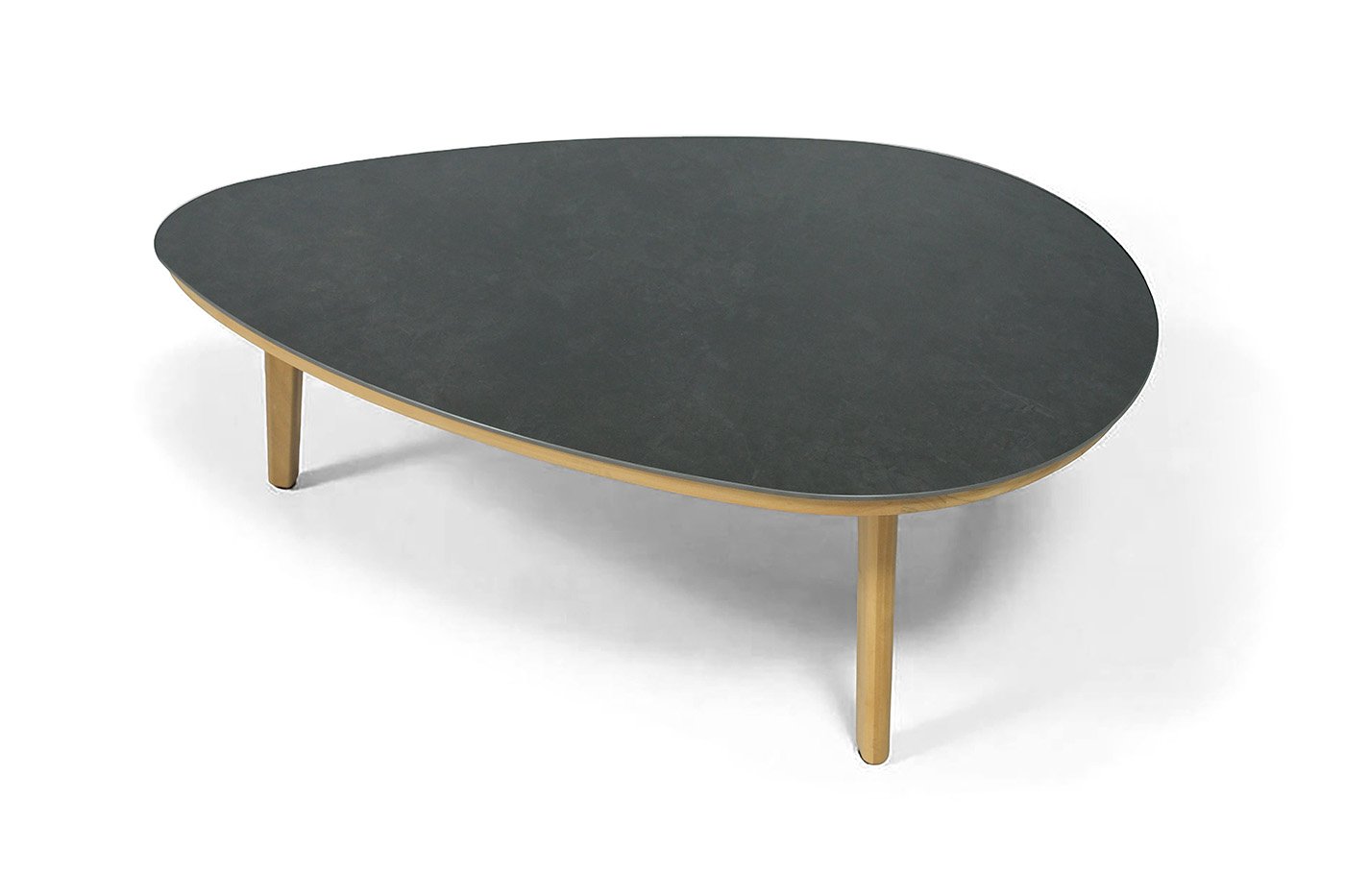 Основание из натурального тика придает теплоту и природную красоту. Тёплый древесный оттенок и природная фактура создают ощущение тепла и близости к природе. Столешница из искусственного камня в цвете «мрамор канделла светло-серый». Придаёт столу современный облик и подчёркивает его элегантность.