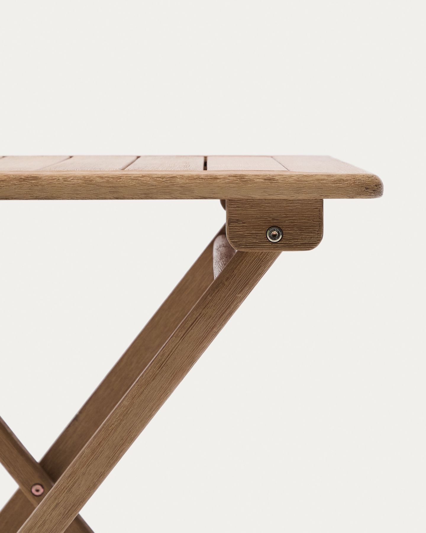 Стол Dandara — идеальное решение для тех, кто ищет функциональность и стиль в небольших помещениях. Его складная конструкция позволяет быстро и легко убирать его, оптимизируя доступное пространство и облегчая его использование только при необходимости. Стол Dandara легко адаптируется к любой обстановке на открытом воздухе — на балконах, террасах или во внутренних двориках. Изготовленный из массива акации и стальной конструкции с антикоррозийной обработкой, этот стол отличается высокой прочностью и устойчивостью. Древесина акации, сертифицированная FSC™ на 100% по цепочке поставок, гарантирует ее контролируемое происхождение и ответственное лесопользование, придавая изделию дополнительную ценность. Специально обработанная стальная конструкция обеспечивает максимальную устойчивость к влажности и воздействию непогоды, что делает ее надежным и долговечным вариантом для наружного использования. Чтобы обеспечить ее оптимальное состояние с течением времени, мы рекомендуем наносить средство для защиты древесины Sterina не реже одного раза в год. Такой простой уход сохраняет его внешний вид и гарантирует, что он сохранит свои свойства в течение длительного времени.
