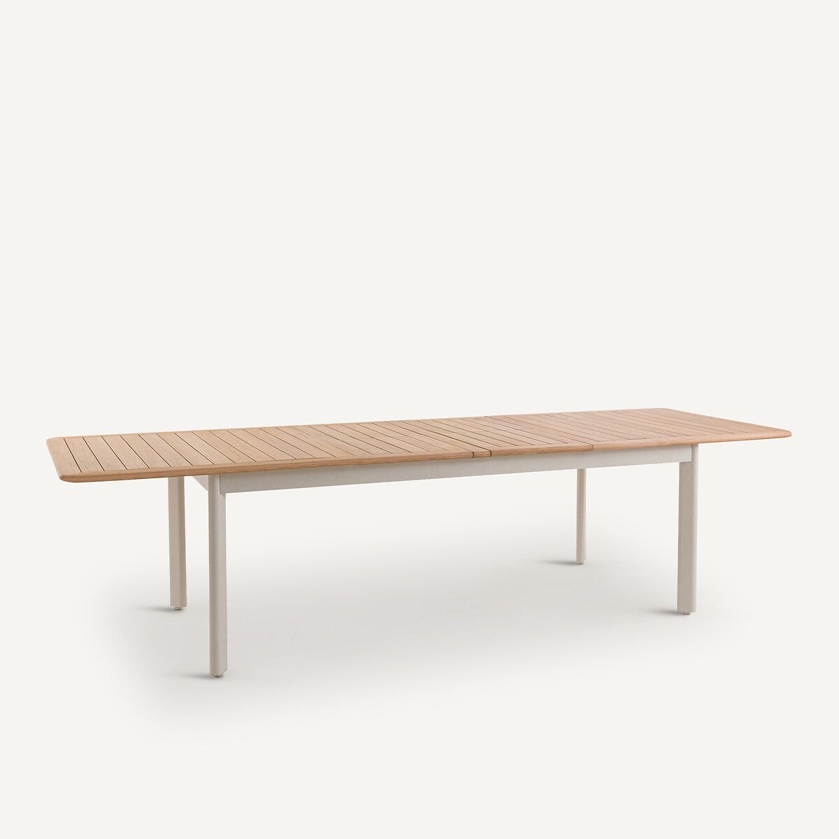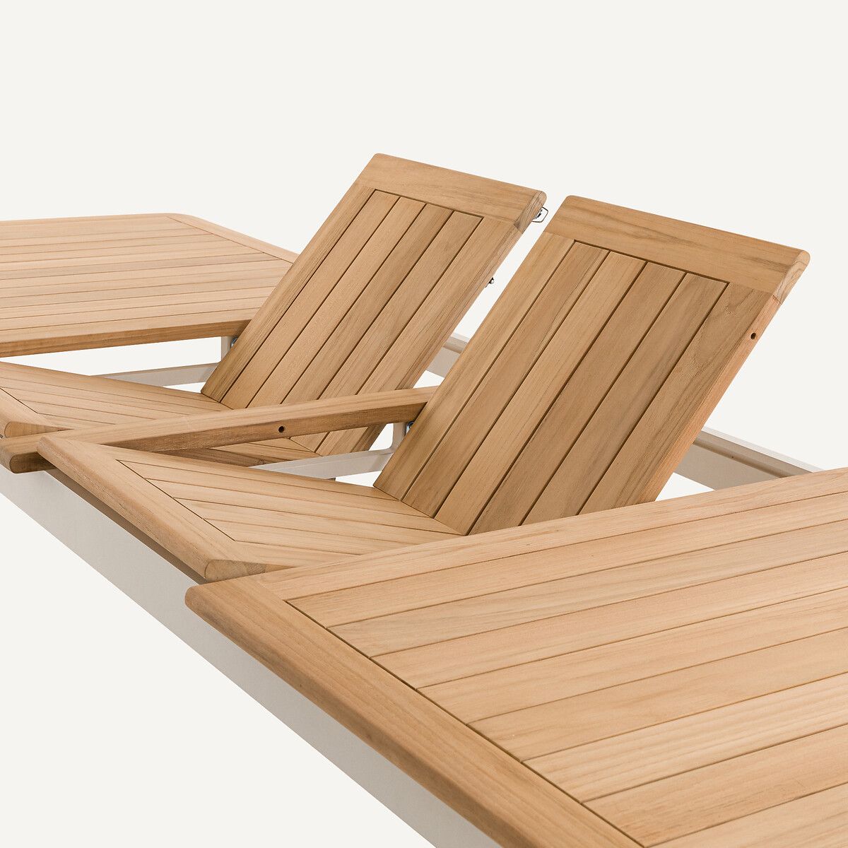 Стол Isabbo, созданный для открытого воздуха, в скульптурном и функциональном стиле для 8–12 персон. Удлиняющие вставки-бабочки, встроенные в столешницу, позволяют увеличить стол без изменения исходного дизайна. Ножки из легкого алюминия, столешница из массива тика — этот раскладной обеденный стол отражает дух коллекции Isabbo: неподвластный времени стиль, функциональность, изменяемость. Изделие AMPM.