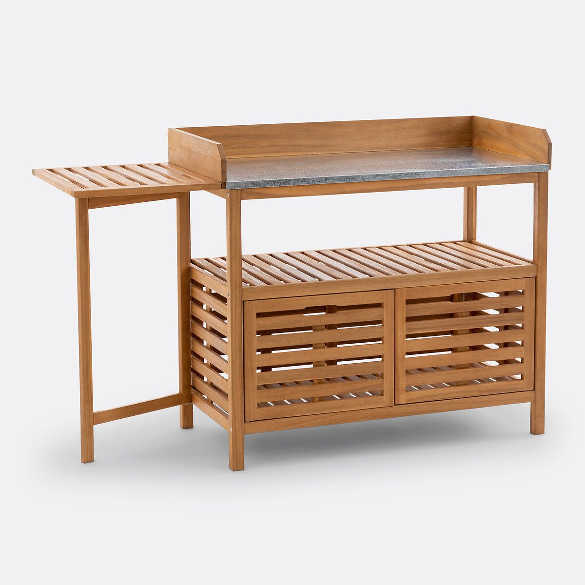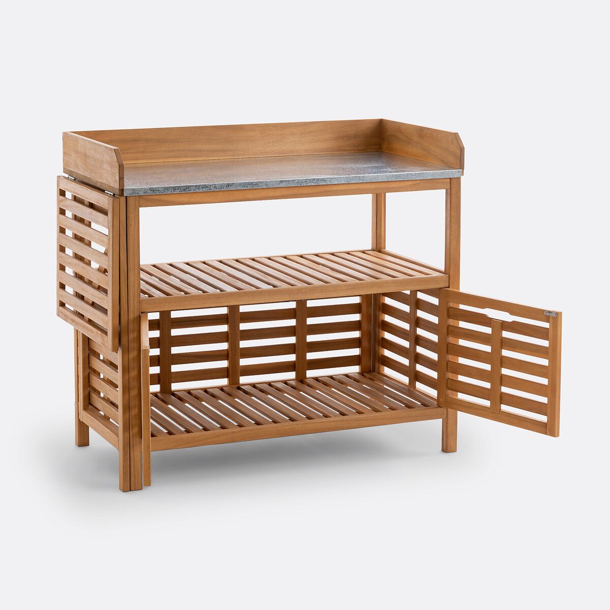Практичный и хорошо продуманный, он позволит высаживать, пересаживать цветы, обрезать и ухаживать за вашими любимыми растениями. Его рабочая поверхность из цинка прочная и легко чистится. Благодаря большому пространству и складной системе, вы будете самым практичным из садоводов!