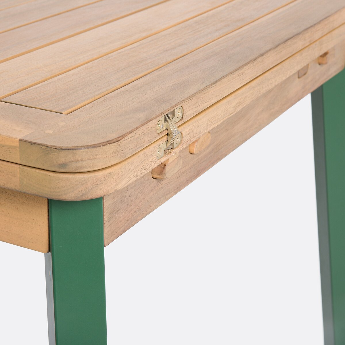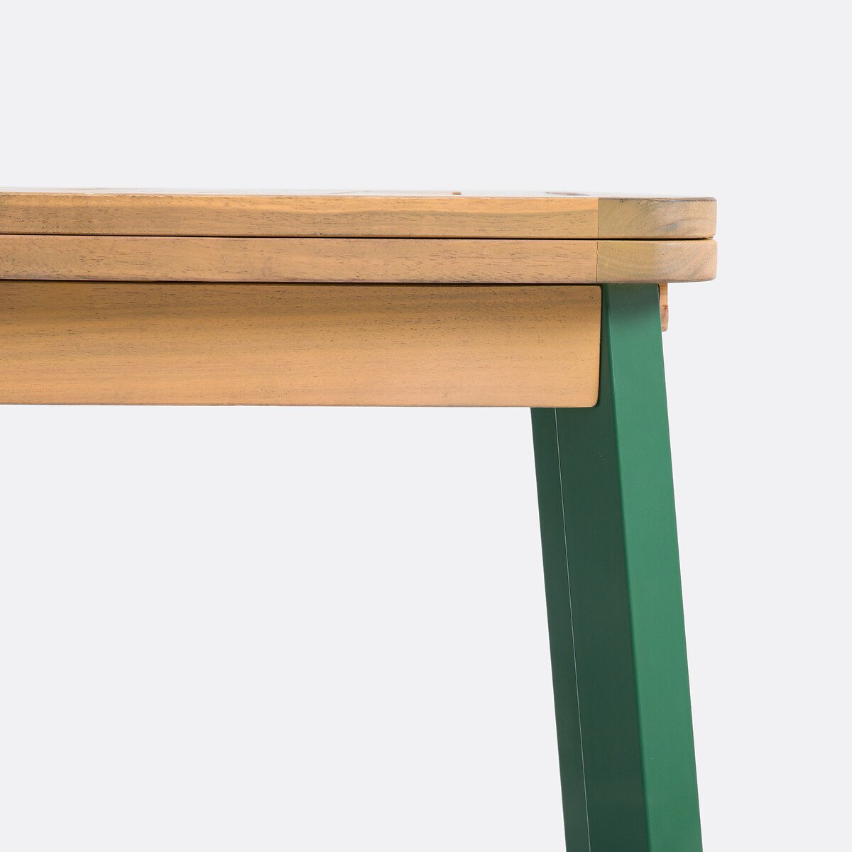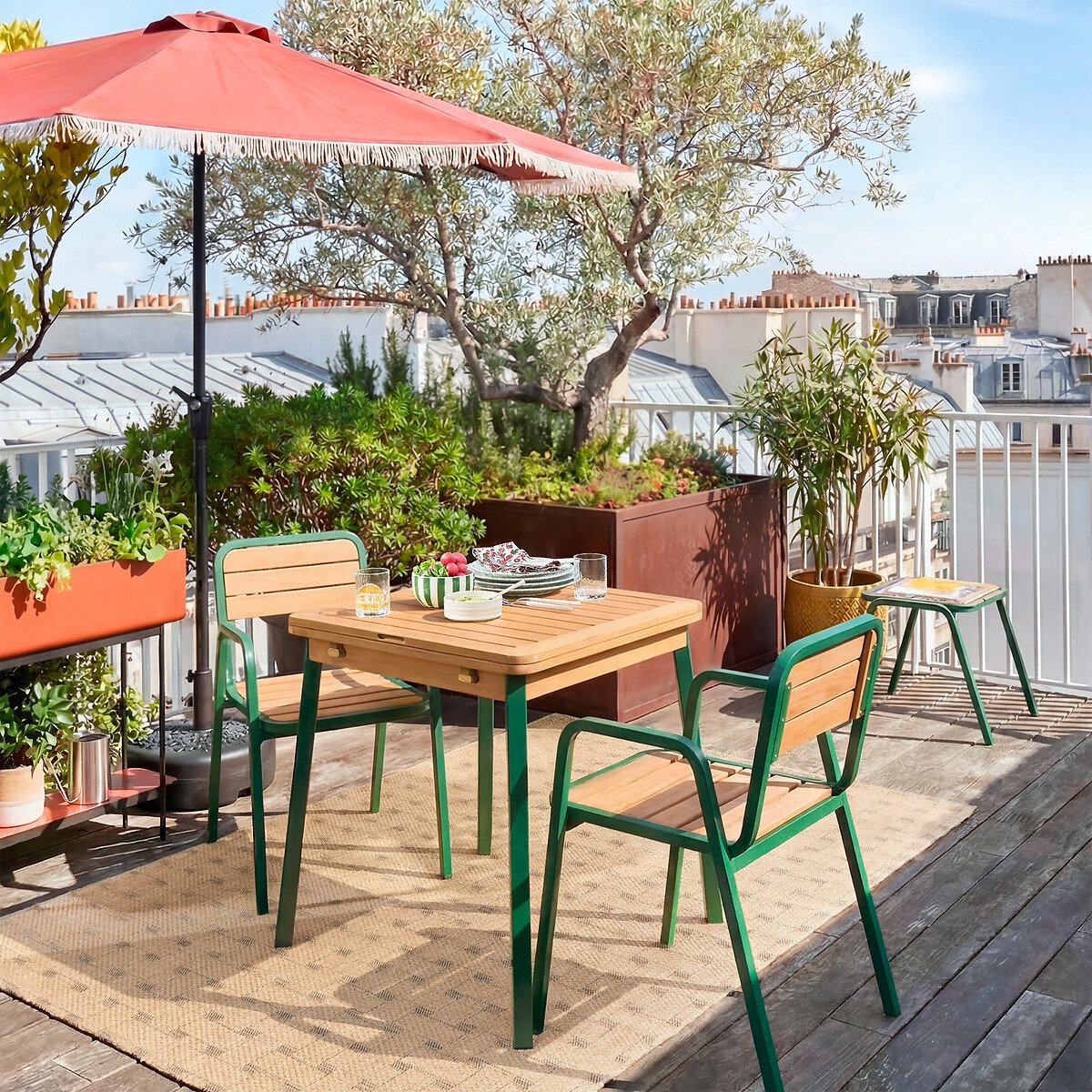 Раскладной стол из оцинкованной стали и массива акации Jaja / Джаджа идеально сочетается с креслами и табуретами из одной коллекции, чтобы превратить ваше внешнее пространство в настоящее место для релакса и приема гостей. Творение La Redoute Intérieurs.