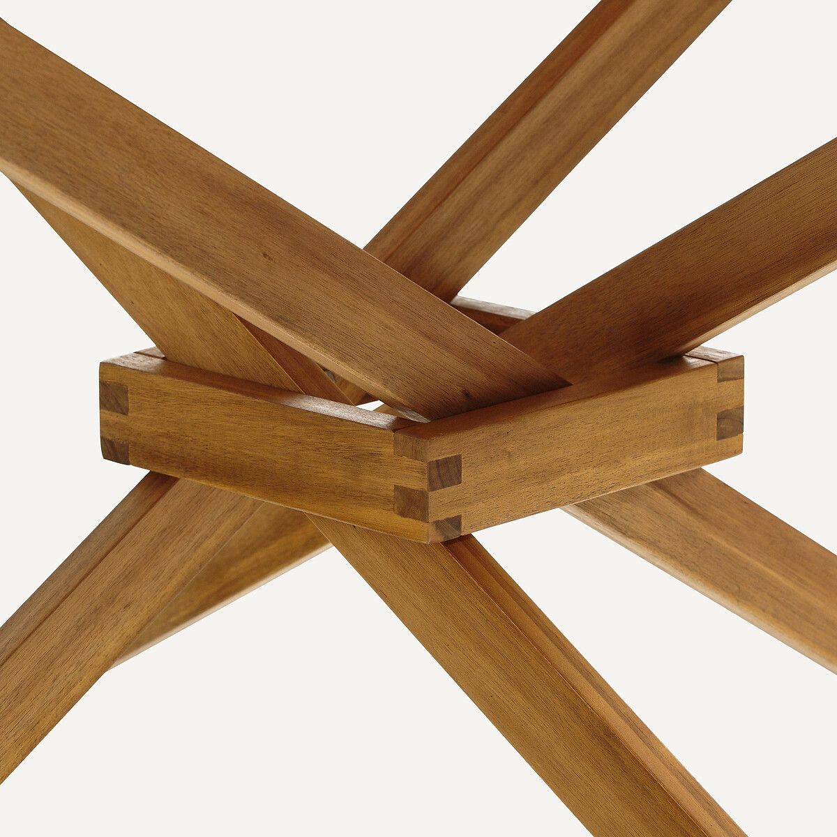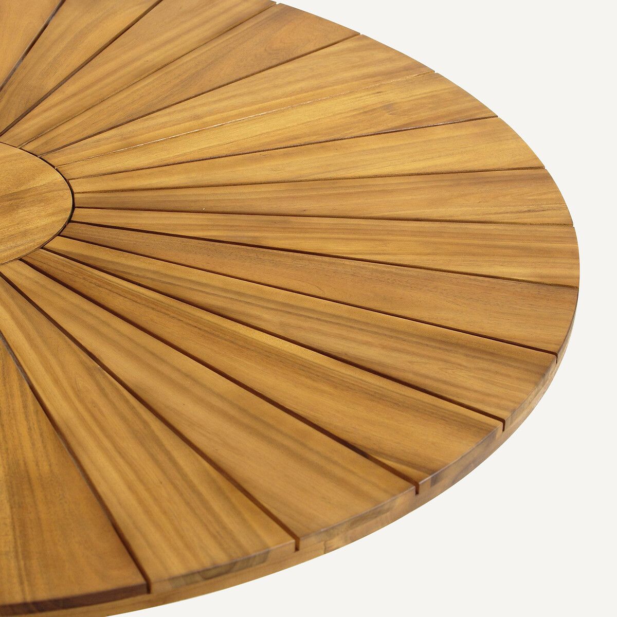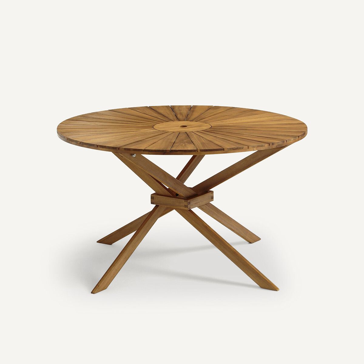 Круглый стол Jakta изготовлен из акации, прочной древесины.