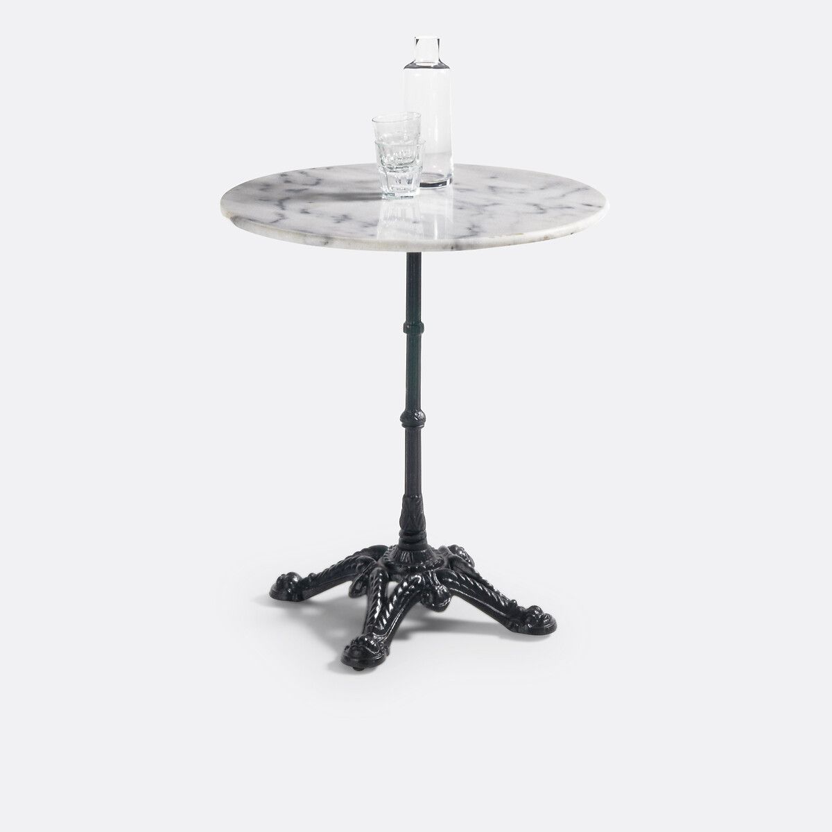 Атмосфера бистро, столешница из белого мрамора и ножка из чугуна, все элементы точно соблюдены, круглый столик на 1 ножке для сада Redville — это любимый элемент стильной атмосферы.