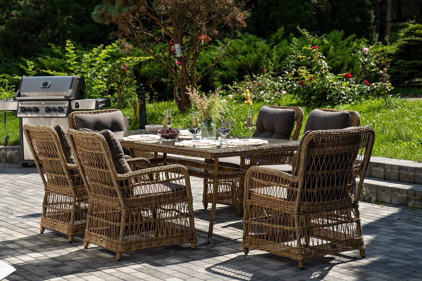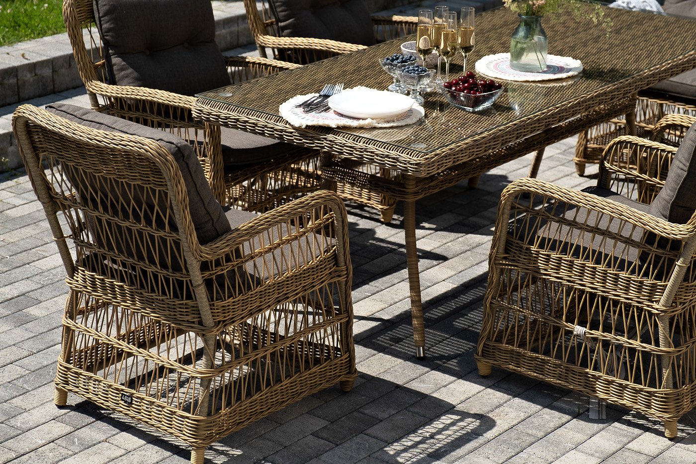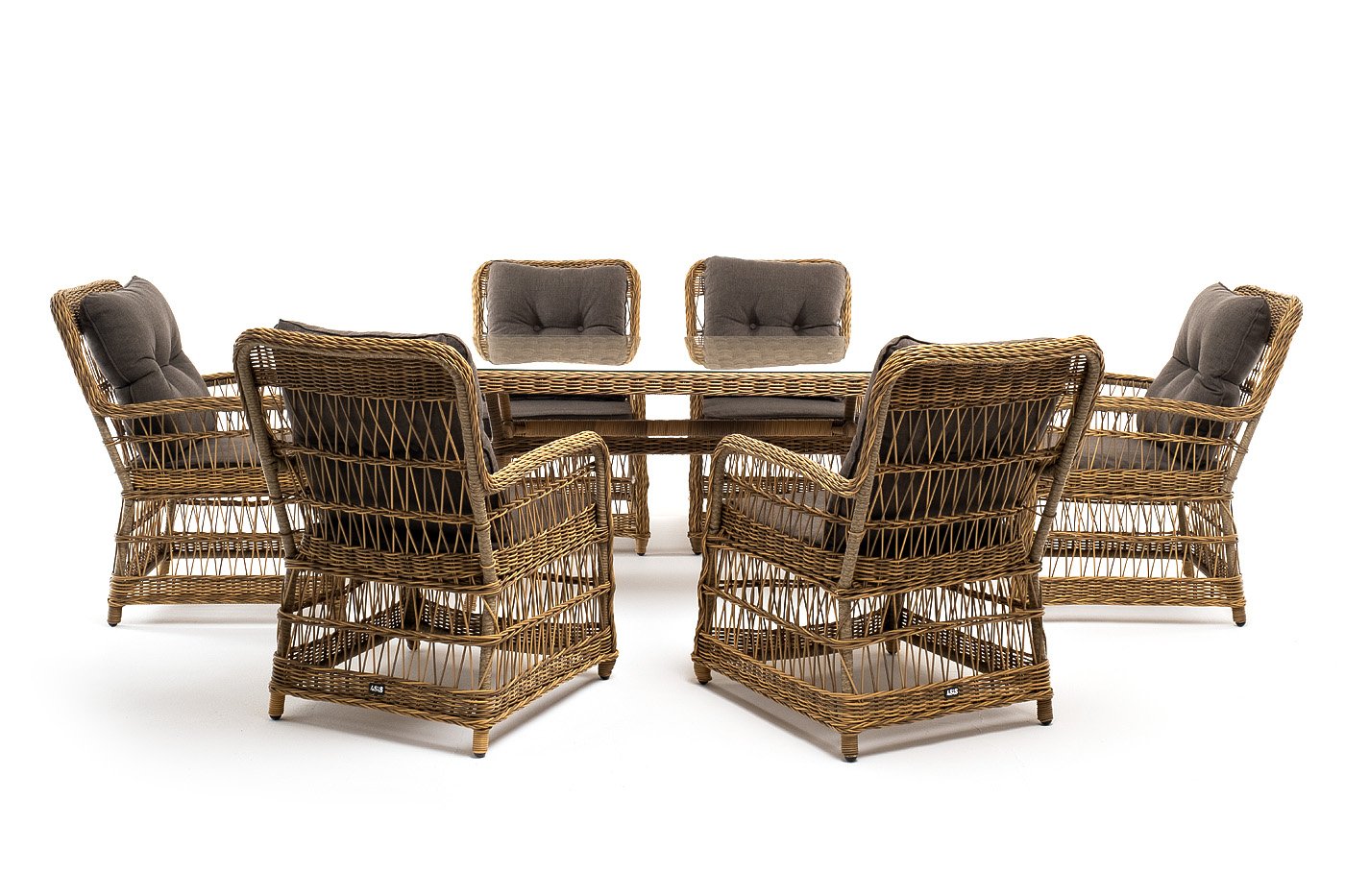 "Латте" плетеный стол из искусственного ротанга 160х90см, цвет соломенный 1шт. 1 600Х900Х750, "Цесена" кресло плетеное из искусственного ротанга, цвет соломенный 6шт. 600Х800Х910,