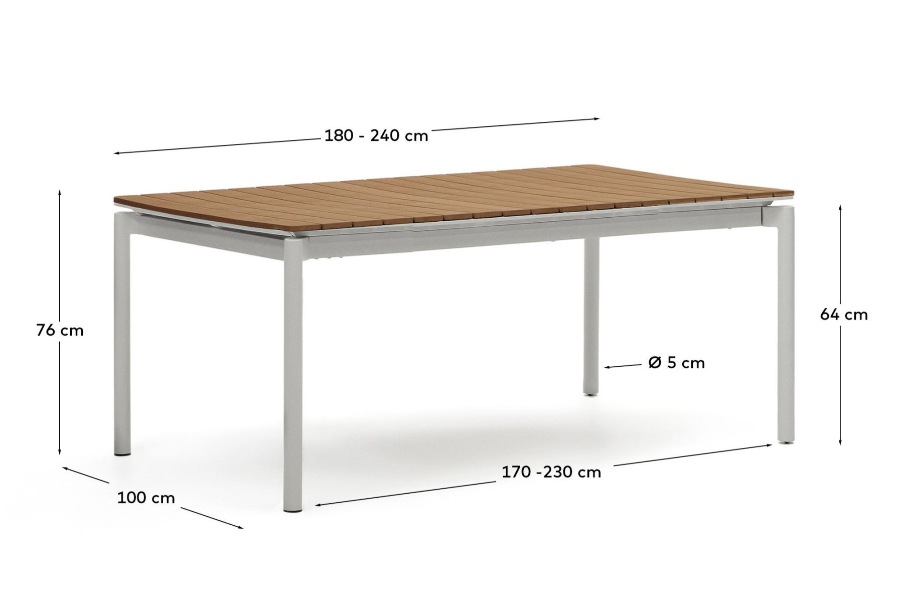 Этот раздвижной стол сочетает в себе функциональность и современный дизайн в лёгкой конструкции, идеально подходящей для тех, кто ценит универсальность без ущерба для стиля. Столешница из поливинилдена отличается высокой прочностью и проста в уходе: достаточно протереть её влажной тряпкой, чтобы сохранить внешний вид. Прочная, но лёгкая алюминиевая конструкция обеспечивает лёгкость перемещения и исключительную устойчивость на любой поверхности.