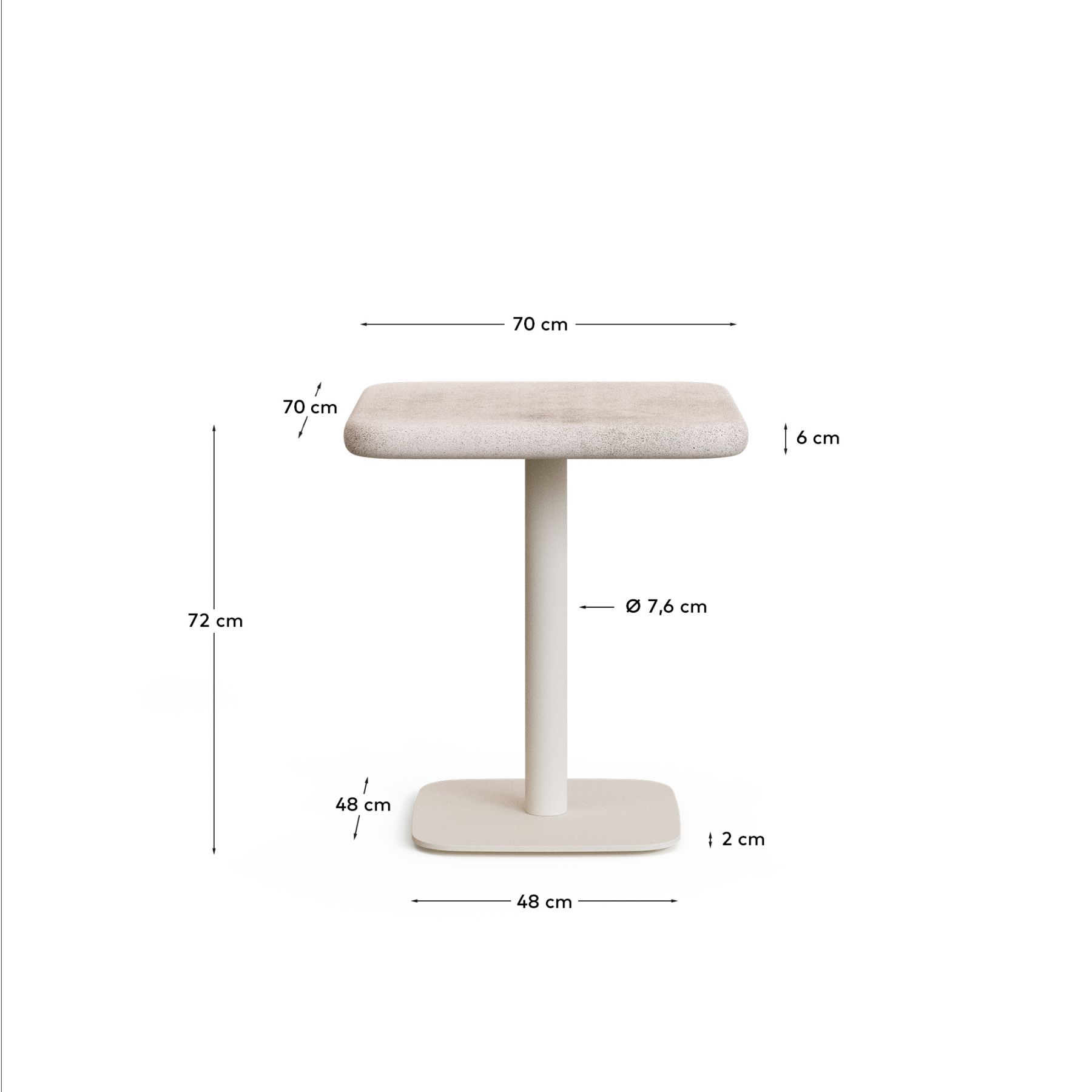 Этот стол отличается прочностью и уникальностью материалов, а также функциональным и инновационным дизайном. Его столешница из цемента отличается уникальной текстурой и современным внешним видом, который придаёт любому помещению характер и аутентичность. Микротрещины и неровности, которые могут появиться из-за перепадов температуры, являются частью его сущности, придавая каждому изделию особый вид без ущерба для прочности и долговечности. Основание из высокопрочного железа, окрашенное распылением, обеспечивает максимальную устойчивость и долговечность. Его прочная конструкция обеспечивает исключительную надежность, позволяя использовать как в помещении, так и на открытом воздухе. Эта комбинация материалов предлагает функциональное решение, готовое выдержать интенсивное использование в условиях с высокими требованиями. Чтобы сохранить его внешний вид и долговечность, мы рекомендуем защищать его от непогоды водонепроницаемым чехлом в осенние и зимние месяцы. Мы также рекомендуем наносить защитную пленку для камня два раза в год, что поможет сохранить его первоначальный внешний вид и конструктивные характеристики. Этот стол отличается своей универсальностью. Соединение между столешницей и основанием было разработано таким образом, чтобы обеспечить максимальную персонализацию, позволяя комбинировать столешницы и основания. Благодаря этому решению стол становится универсальным и динамичным элементом, идеально подходящим для заведений общественного питания и коммерческих помещений. Возможность легко изменять его внешний вид позволяет адаптировать его к различным стилям или функциональным потребностям без необходимости вносить серьезные изменения. Благодаря неподвластному времени дизайну, высококачественным материалам и возможности персонализации это идеальный вариант для тех, кто ищет эстетику и функциональность в одном продукте.