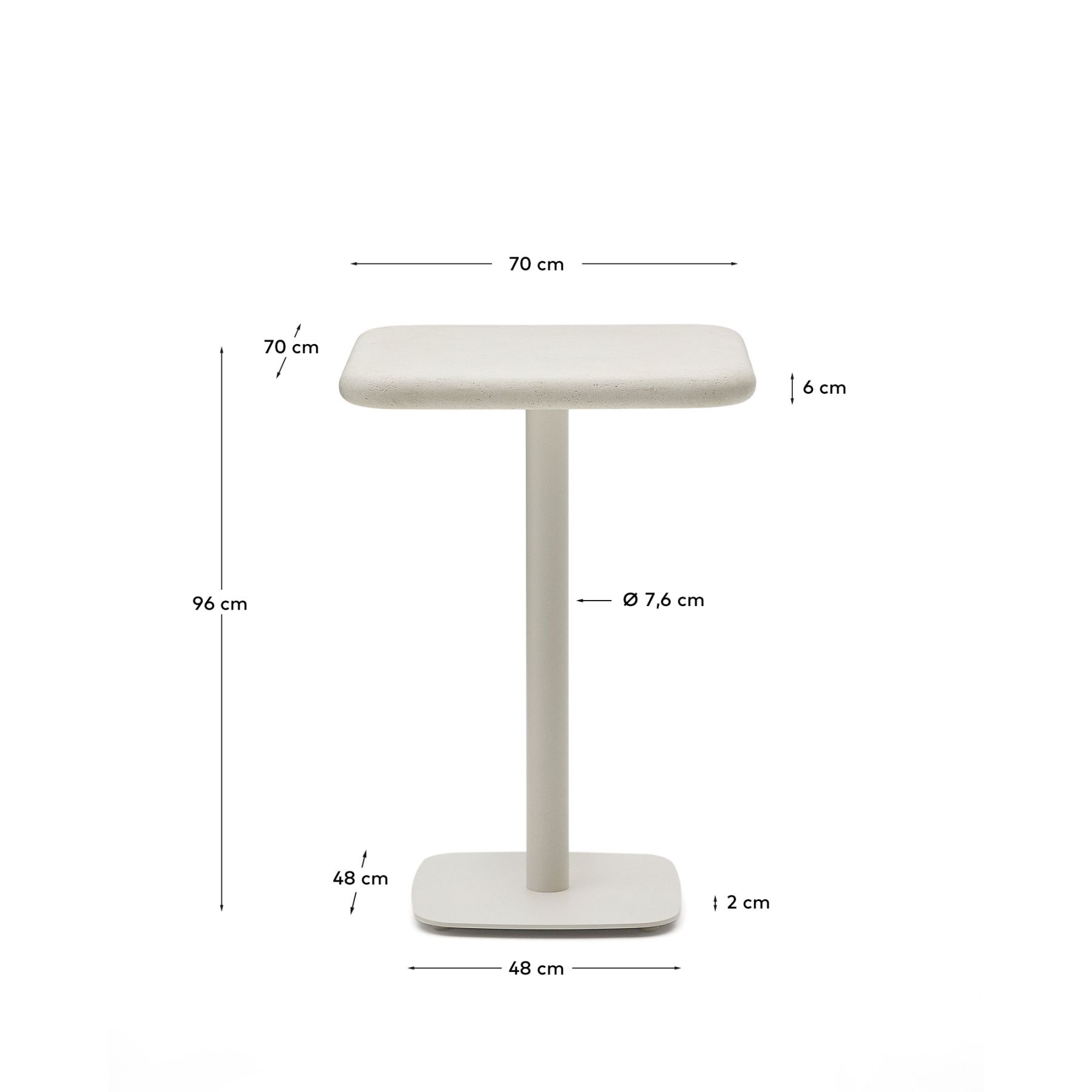 Этот стол отличается прочностью и уникальностью материалов, а также функциональным и инновационным дизайном. Его столешница из цемента отличается уникальной текстурой и современным внешним видом, который придаёт любому помещению характер и аутентичность. Микротрещины и неровности, которые могут появиться из-за перепадов температуры, являются частью его сущности, придавая каждому изделию особый вид без ущерба для прочности и долговечности. Основание из высокопрочного железа, окрашенное распылением, обеспечивает максимальную устойчивость и долговечность. Его прочная конструкция обеспечивает исключительную надежность, позволяя использовать как в помещении, так и на открытом воздухе. Эта комбинация материалов предлагает функциональное решение, готовое выдержать интенсивное использование в условиях с высокими требованиями. Чтобы сохранить его внешний вид и долговечность, мы рекомендуем защищать его от непогоды водонепроницаемым чехлом в осенние и зимние месяцы. Мы также рекомендуем наносить защитную пленку для камня два раза в год, что поможет сохранить его первоначальный внешний вид и конструктивные характеристики. Этот стол отличается своей универсальностью. Соединение между столешницей и основанием было разработано таким образом, чтобы обеспечить максимальную персонализацию, позволяя комбинировать столешницы и основания. Благодаря этому решению стол становится универсальным и динамичным элементом, идеально подходящим для заведений общественного питания и коммерческих помещений. Возможность легко изменять его внешний вид позволяет адаптировать его к различным стилям или функциональным потребностям без необходимости вносить серьезные изменения. Благодаря неподвластному времени дизайну, высококачественным материалам и возможности персонализации это идеальный вариант для тех, кто ищет эстетику и функциональность в одном продукте.