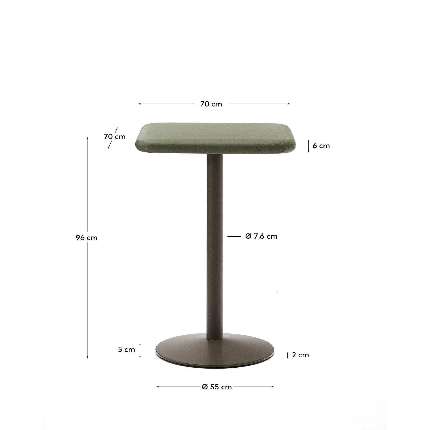 Этот стол отличается прочностью и уникальностью материалов, а также функциональным и инновационным дизайном. Его столешница из цемента отличается уникальной текстурой и современным внешним видом, который придаёт любому помещению характер и аутентичность. Микротрещины и неровности, которые могут появиться из-за перепадов температуры, являются частью его сущности, придавая каждому изделию особый вид без ущерба для прочности и долговечности. Основание из высокопрочного железа, окрашенное распылением, обеспечивает максимальную устойчивость и долговечность. Его прочная конструкция обеспечивает исключительную надежность, позволяя использовать как в помещении, так и на открытом воздухе. Эта комбинация материалов предлагает функциональное решение, готовое выдержать интенсивное использование в условиях с высокими требованиями. Чтобы сохранить его внешний вид и долговечность, мы рекомендуем защищать его от непогоды водонепроницаемым чехлом в осенние и зимние месяцы. Мы также рекомендуем наносить защитную пленку для камня два раза в год, что поможет сохранить его первоначальный внешний вид и конструктивные характеристики. Этот стол отличается своей универсальностью. Соединение между столешницей и основанием было разработано таким образом, чтобы обеспечить максимальную персонализацию, позволяя комбинировать столешницы и основания. Благодаря этому решению стол становится универсальным и динамичным элементом, идеально подходящим для заведений общественного питания и коммерческих помещений. Возможность легко изменять его внешний вид позволяет адаптировать его к различным стилям или функциональным потребностям без необходимости вносить серьезные изменения. Благодаря неподвластному времени дизайну, высококачественным материалам и возможности персонализации это идеальный вариант для тех, кто ищет эстетику и функциональность в одном продукте.