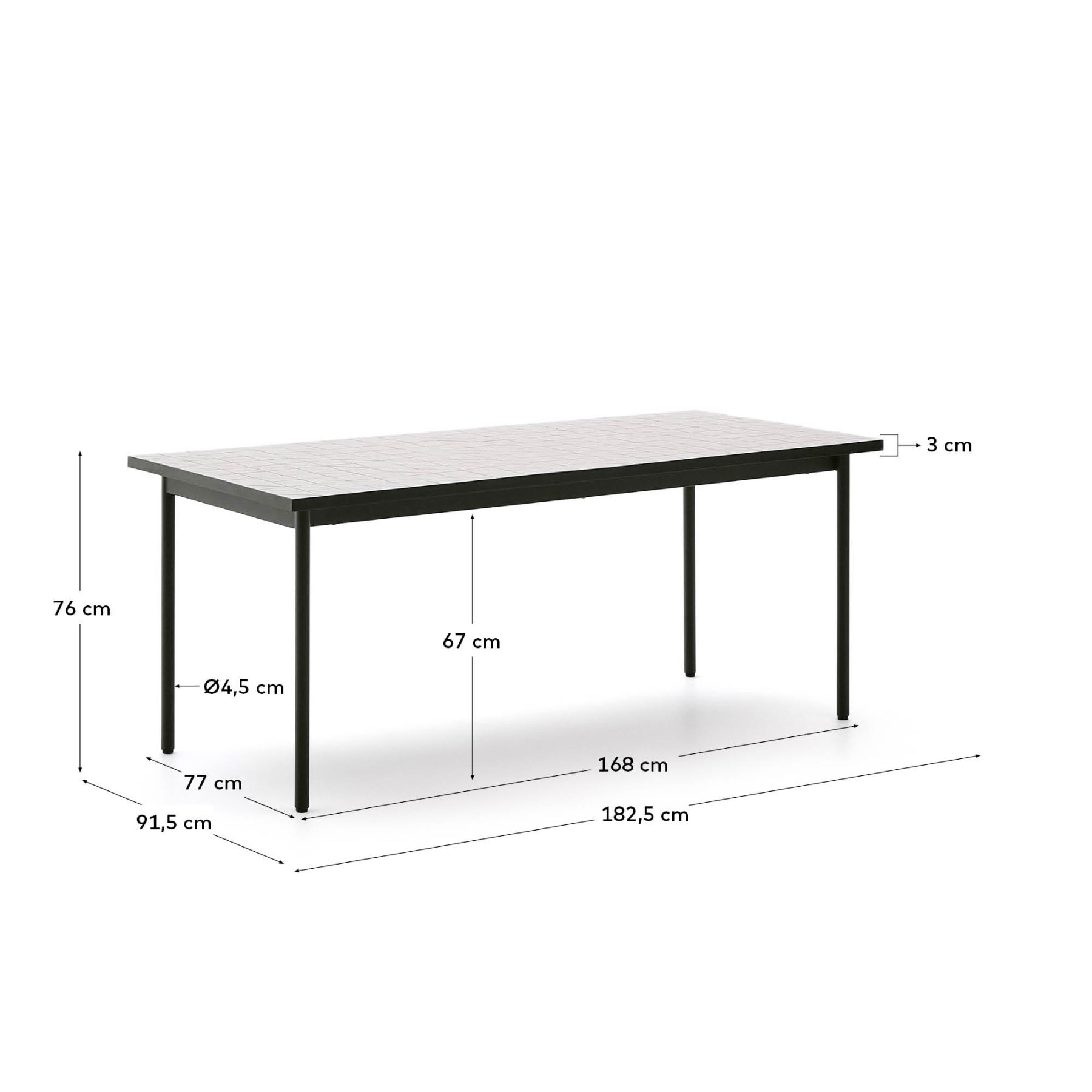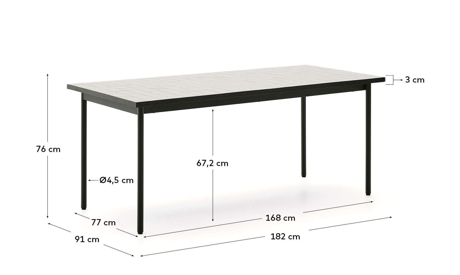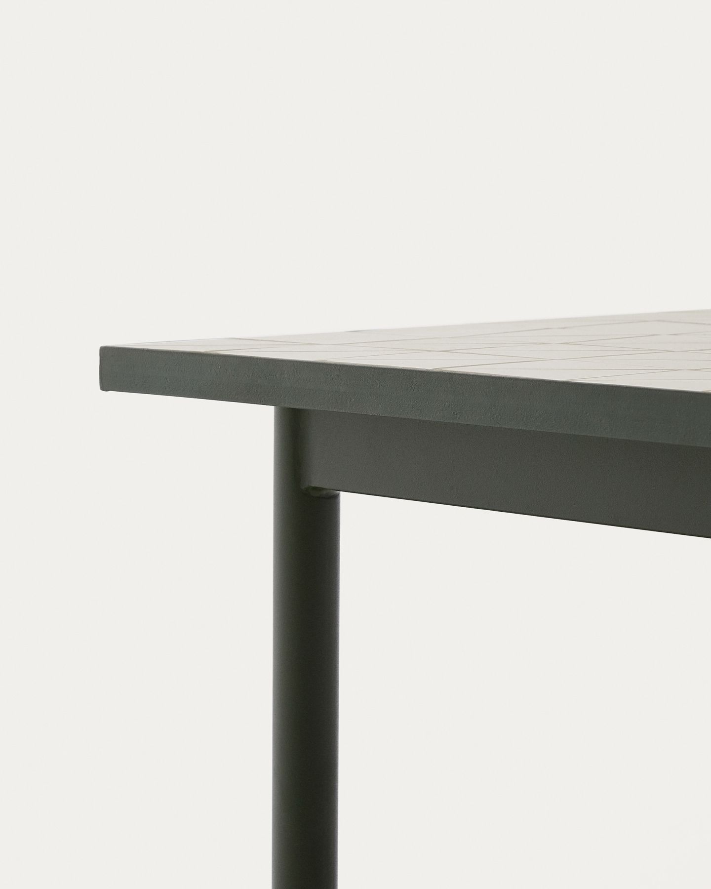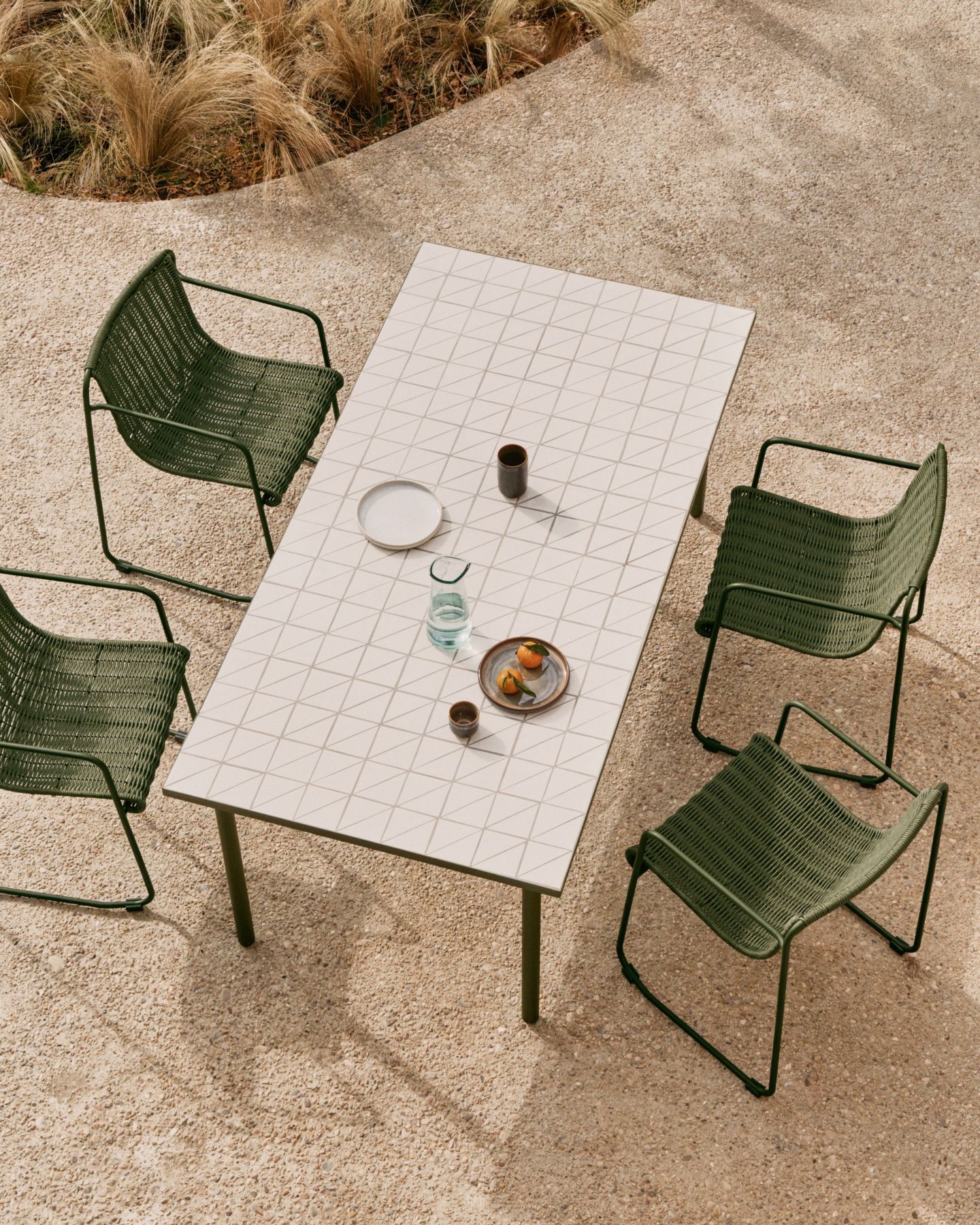 Этот стол, разработанный эксклюзивно студией Yonoh Studio для Kave Home, переосмысливает сущность Средиземноморья с современным и ярким подходом. Верх, состоящий из мозаики геометрических плиток, является данью традиционному мастерству: каждая плитка была тщательно размещена вручную.