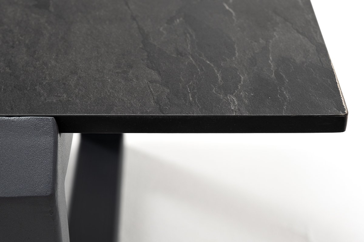 Журнальный стол «Варадеро» каркас изготовлен из алюминия, окрашенного в темно-серый цвет. Столешница выполнена из высококачественного монолитного компакт-пластика HPL, толщиной 12 мм. Цвет столешницы - «серый гранит».