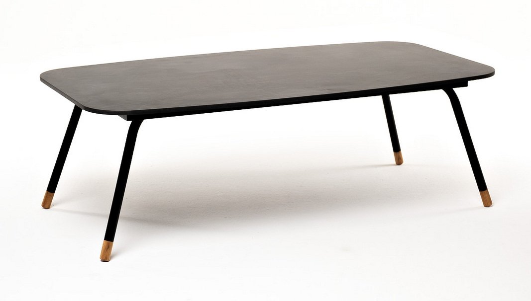 Каркас столика изготовлен из алюминия, окрашенного в черный цвет. Алюминий является легким и прочным материалом, что обеспечивает долговечность и надежность изделия. На ножках столика идут дубовые наконечники (заглушки).