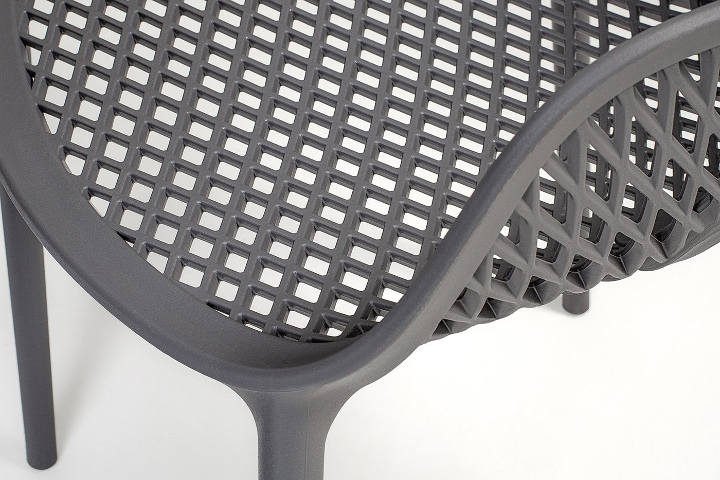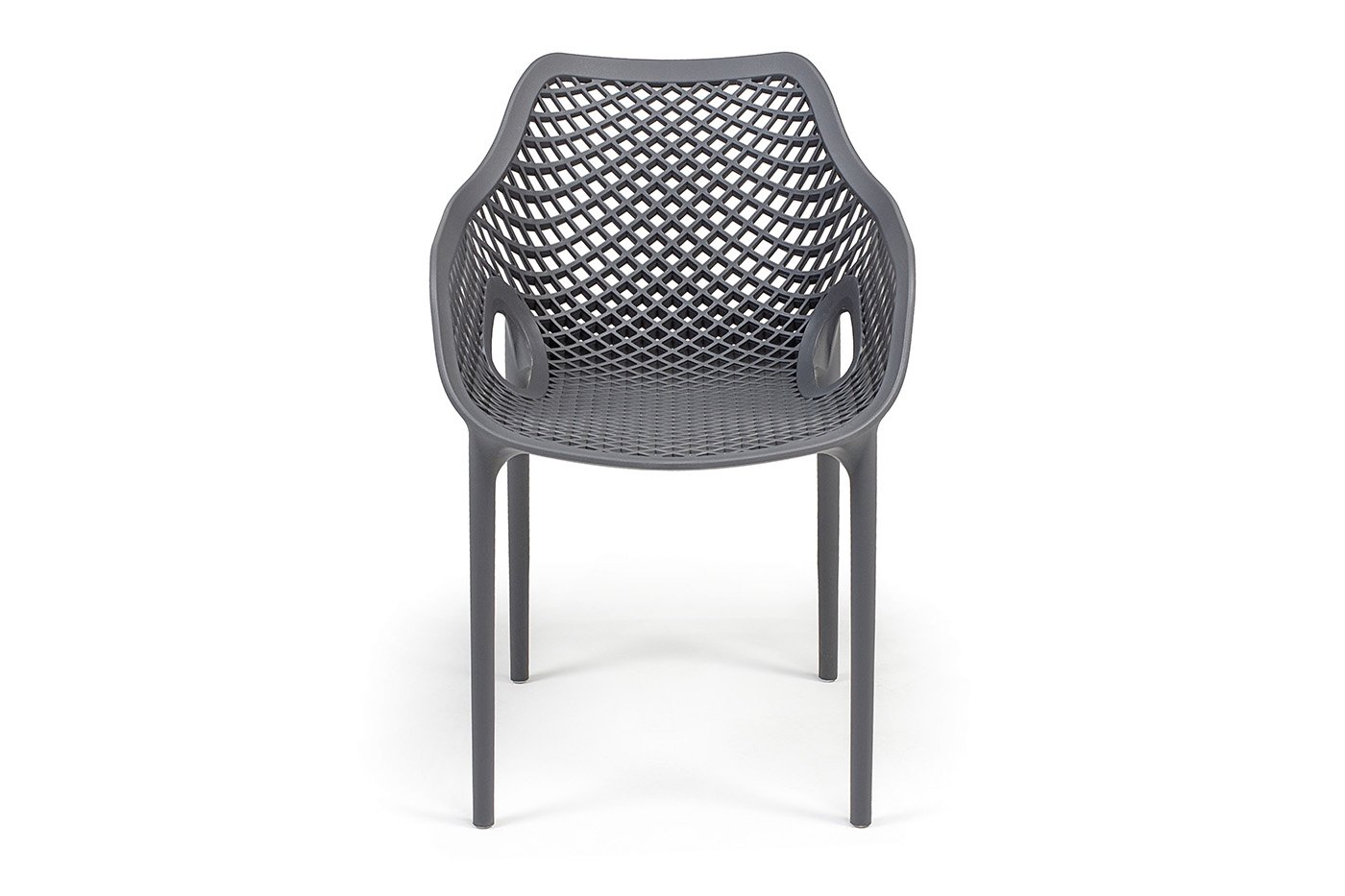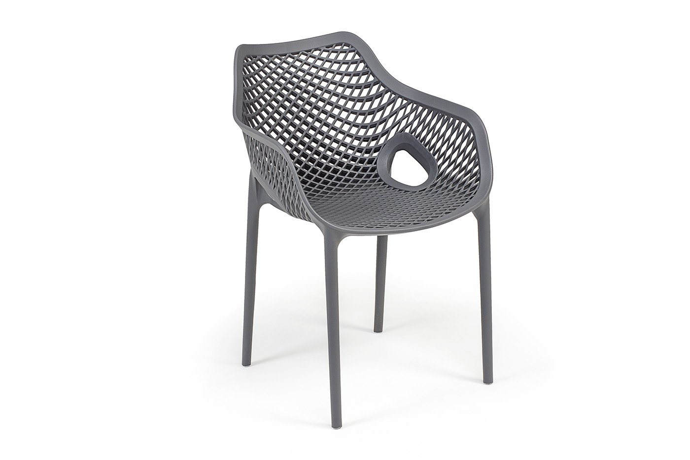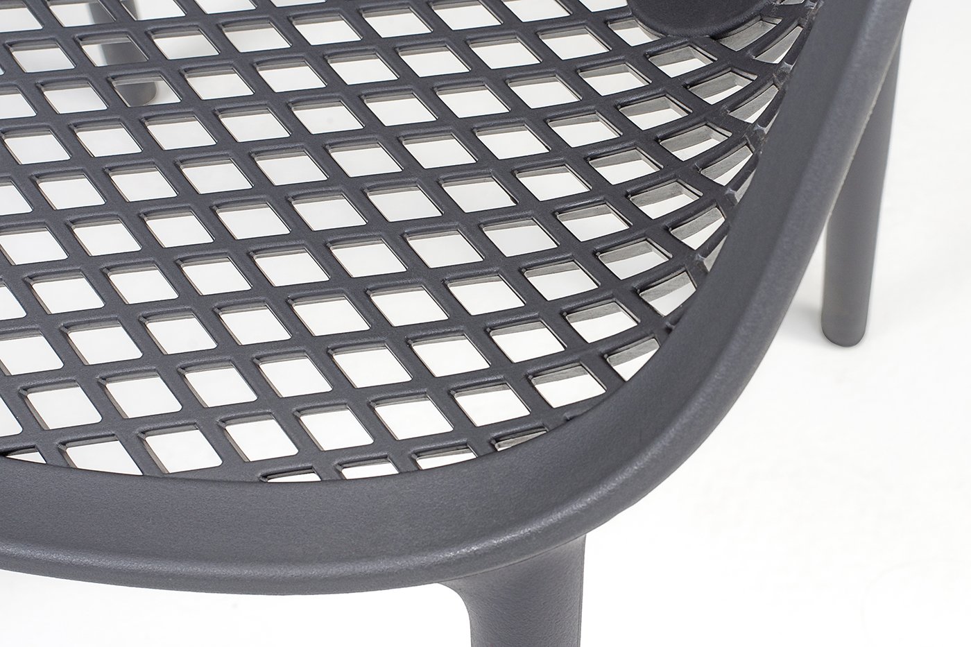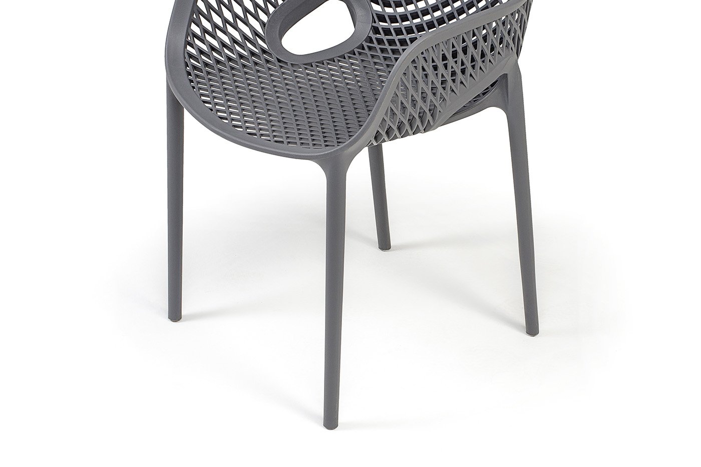 Изготовлен из полипропилена, прочного и стойкого пластика, устойчивого к УФ-излучению, благодаря этому стул сохраняет свой первоначальный вид и не выцветает на солнце даже несмотря на активную эксплуатацию. Цвет - темно-серый.