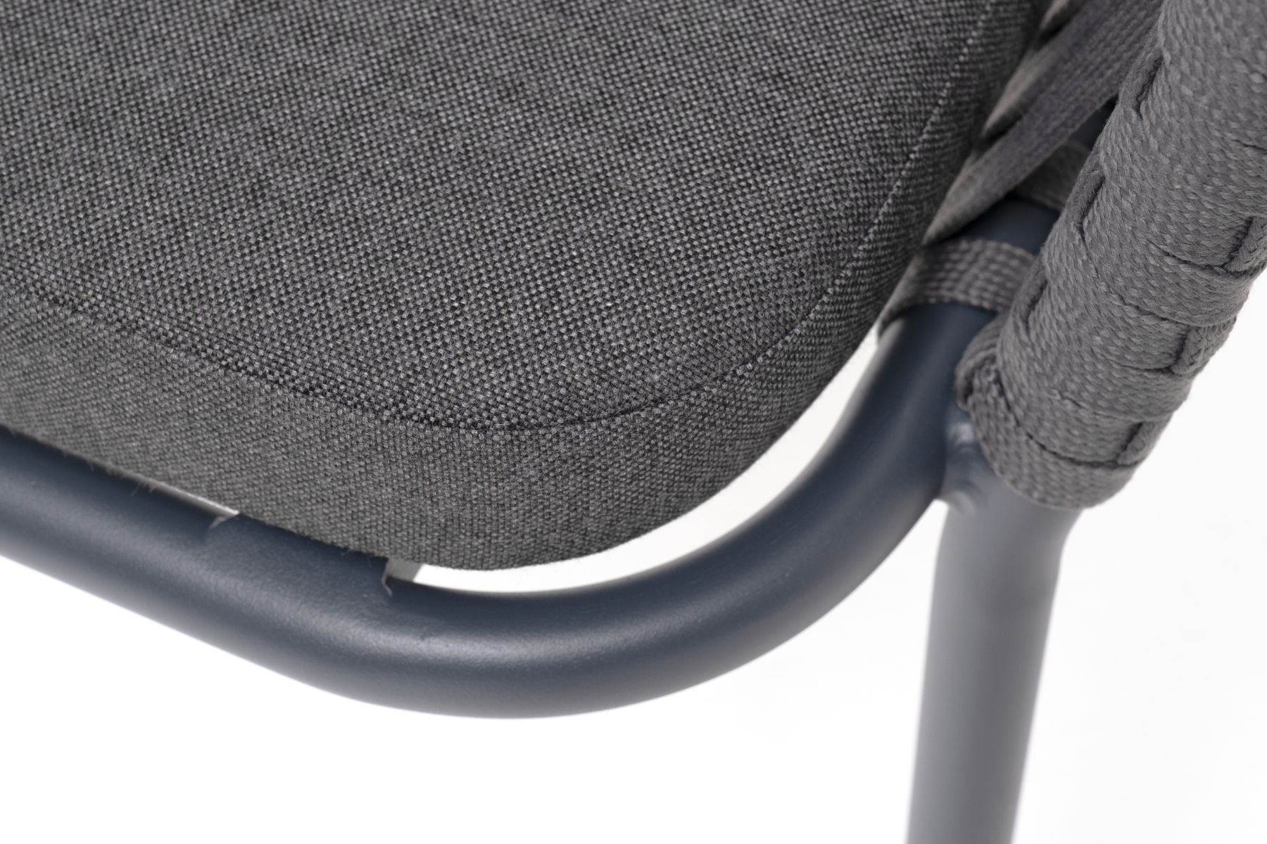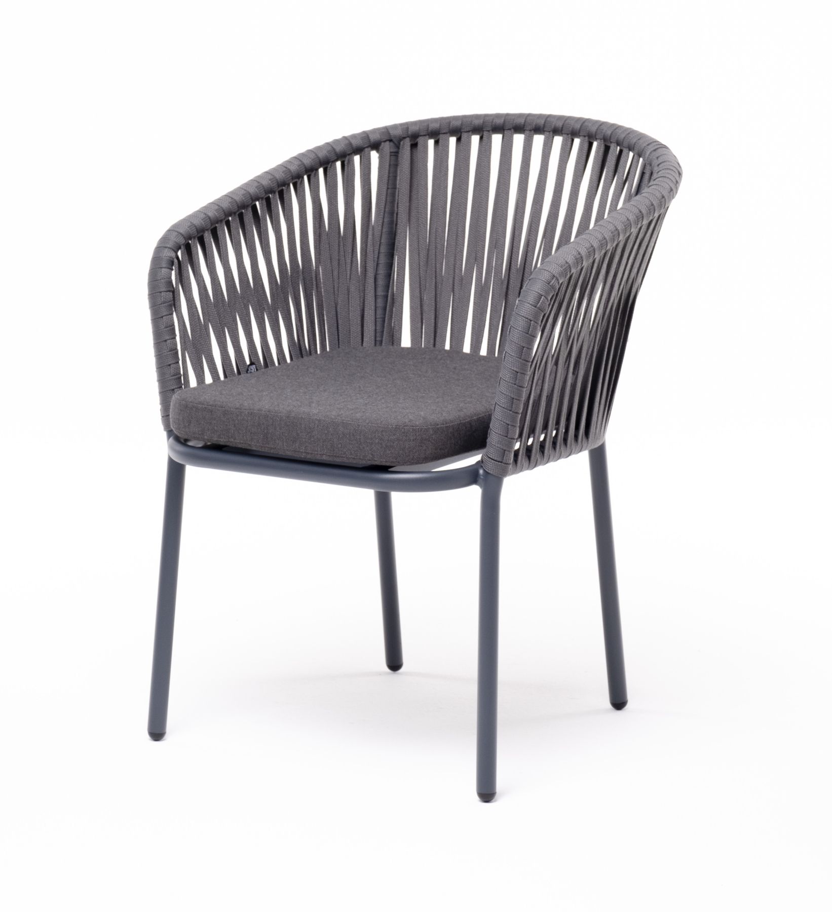 Каркас вручную оплетен серым роупом - эластичными синтетическими лентами из высокопрочных полиэфирных волокон.