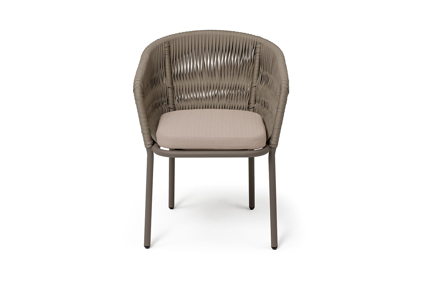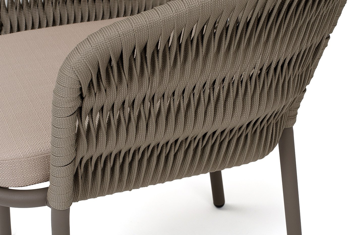 Стул «Бордо» изготовлен из алюминиевого каркаса, окрашенного порошковой износостойкой краской в бежево-серый (RAL7006) цвет.