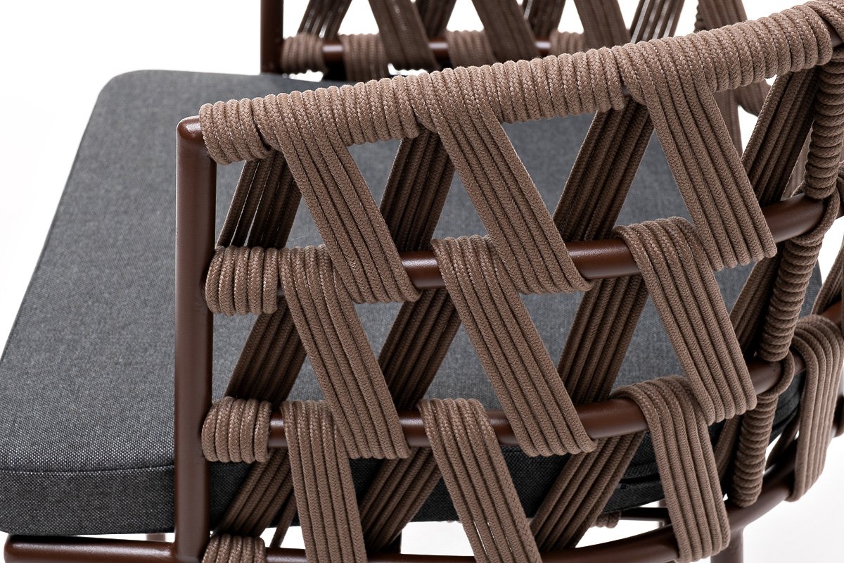 Каркас вручную оплетен коричневым (RAL8016) роупом - эластичными синтетическими лентами из высокопрочных полиэфирных волокон.