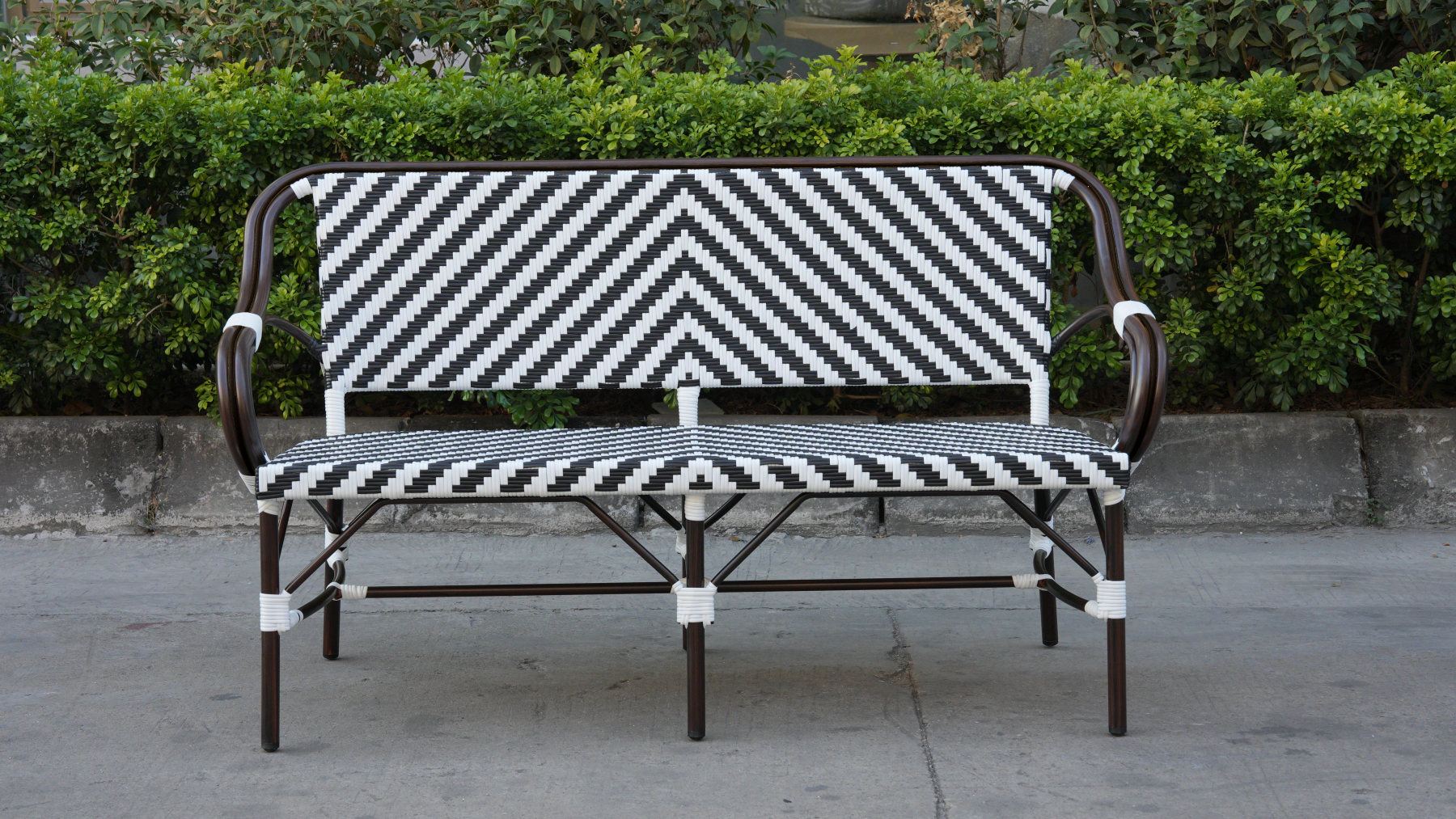 Плетение выполнено вручную из плоского искусственного ротанга 12х1,3 мм. Цвет оплетки - черно-белый.