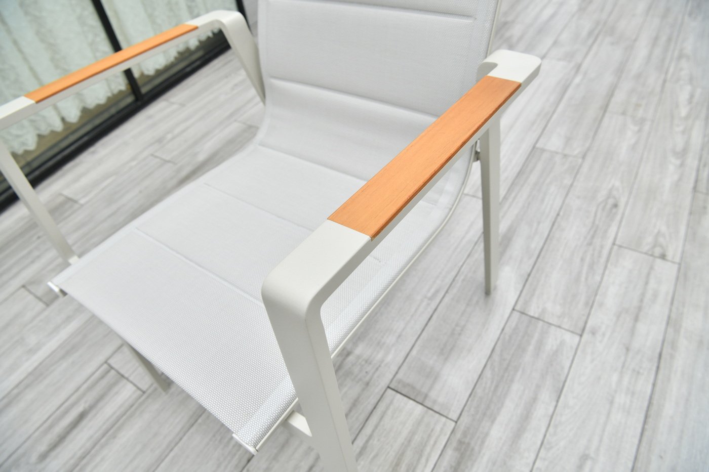 Ткань текстилен — это сетка индустриального плетения из полиэстеровой нити с виниловым покрытием белого цвета. Устойчив к ультрафиолетовому излучению, не промокает, вода проходит насквозь, быстро высыхает.