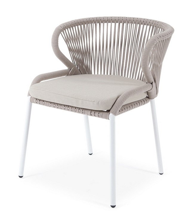 Изготовлен из алюминиевого каркаса, оплетенного вручную эластичными синтетическими лентами из высокопрочных полиэфирных волокон (роуп круглый). Цвет каркаса и оплетки - бежевый.