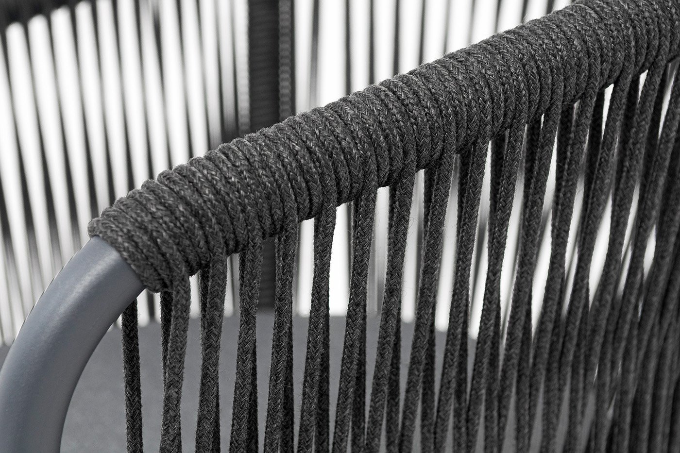 Выполнен из алюминиевого каркаса темно-серого (RAL7024) цвета. Оплетка - современный материал «роуп», которым каркас оплетался вручную.