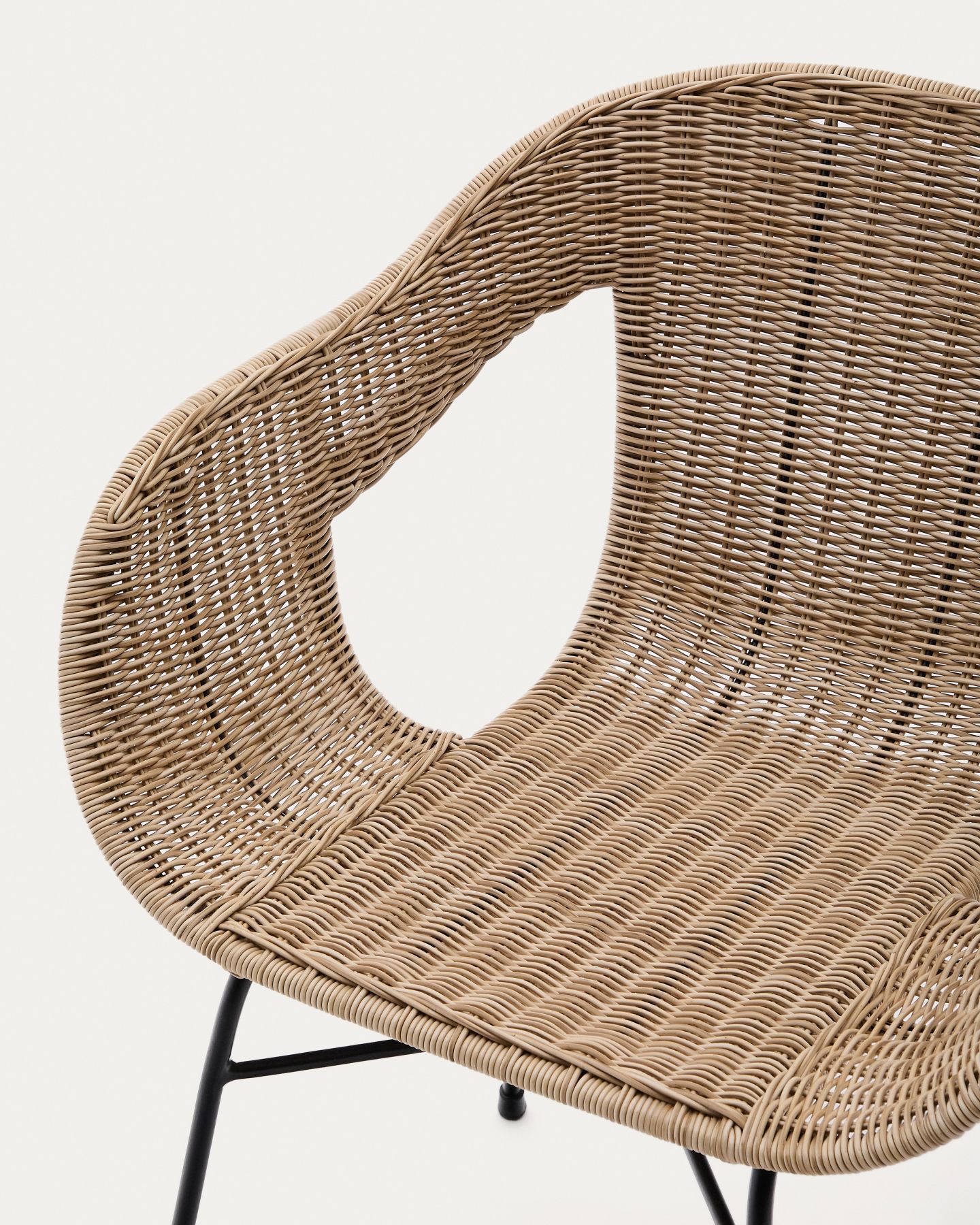 Кресло Eltiera из искусственного ротанга с каркасом из черной стали, выполненное в деревенском стиле, прекрасно впишется в любой стиль.