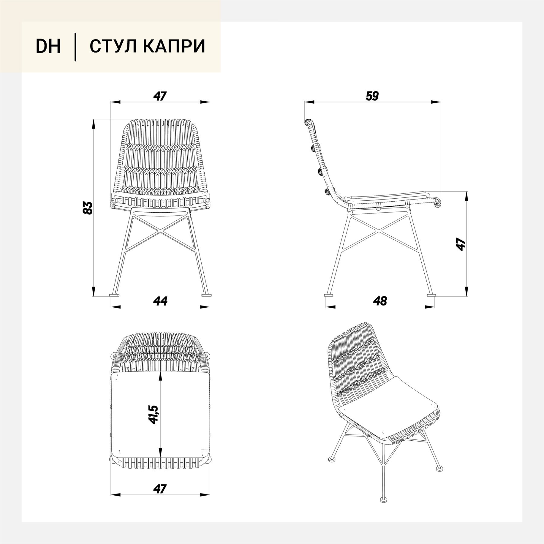 Привлекательный стул Капри нежного бежевого цвета располагает к себе филигранностью дизайнерского исполнения. Над просторным сидением, не скованным подлокотниками, возвышается удобная спинка. Плетеная конструкция своей легкостью и расцветкой создает поистине летнее настроение. Складывается впечатление, что данная модель сделана из воздуха. Пространство будто проходит через нее. Этот стул подойдет как для домашнего помещения (на кухне или веранде он будет смотреться особенно гармонично), так и к интерьеру открытых кафе.