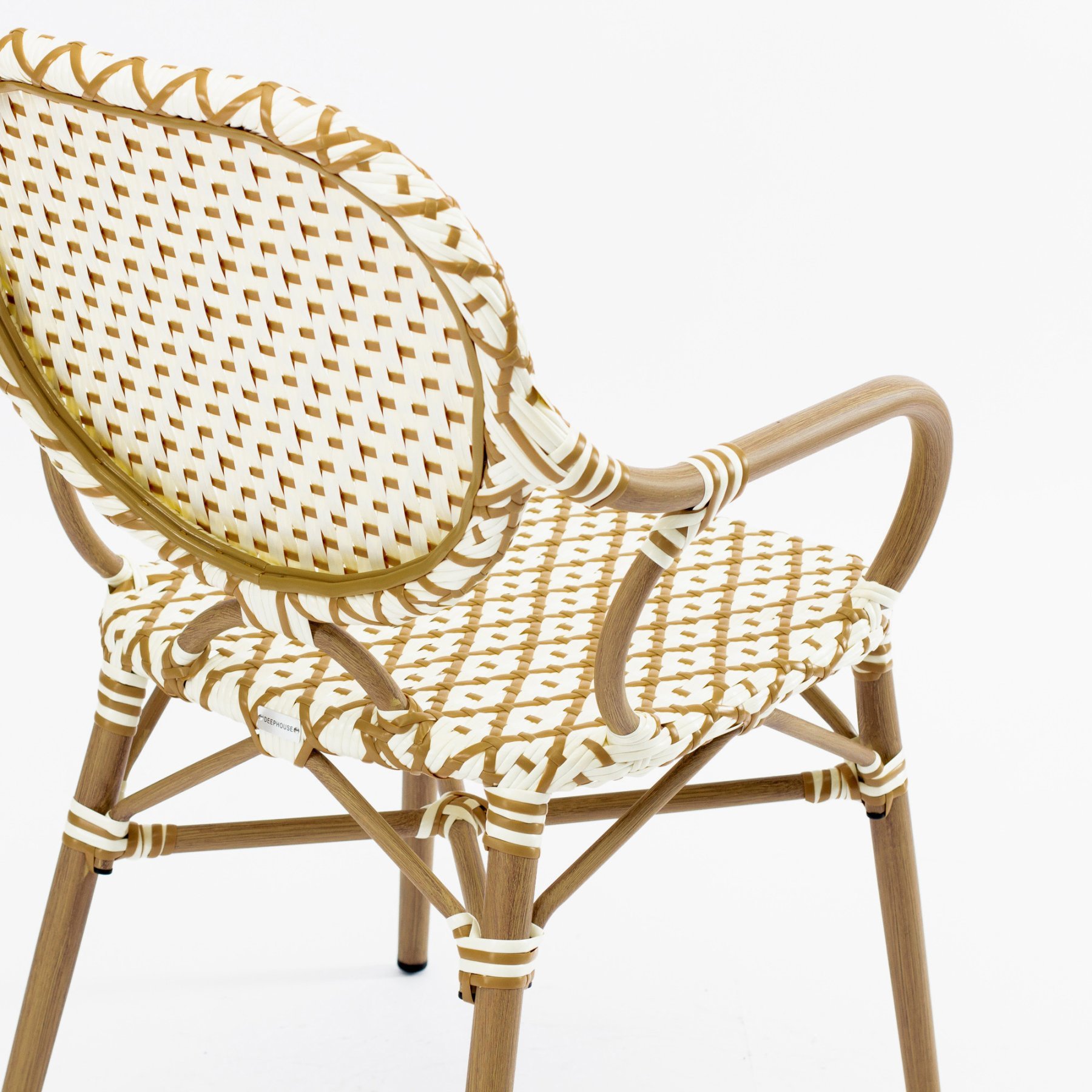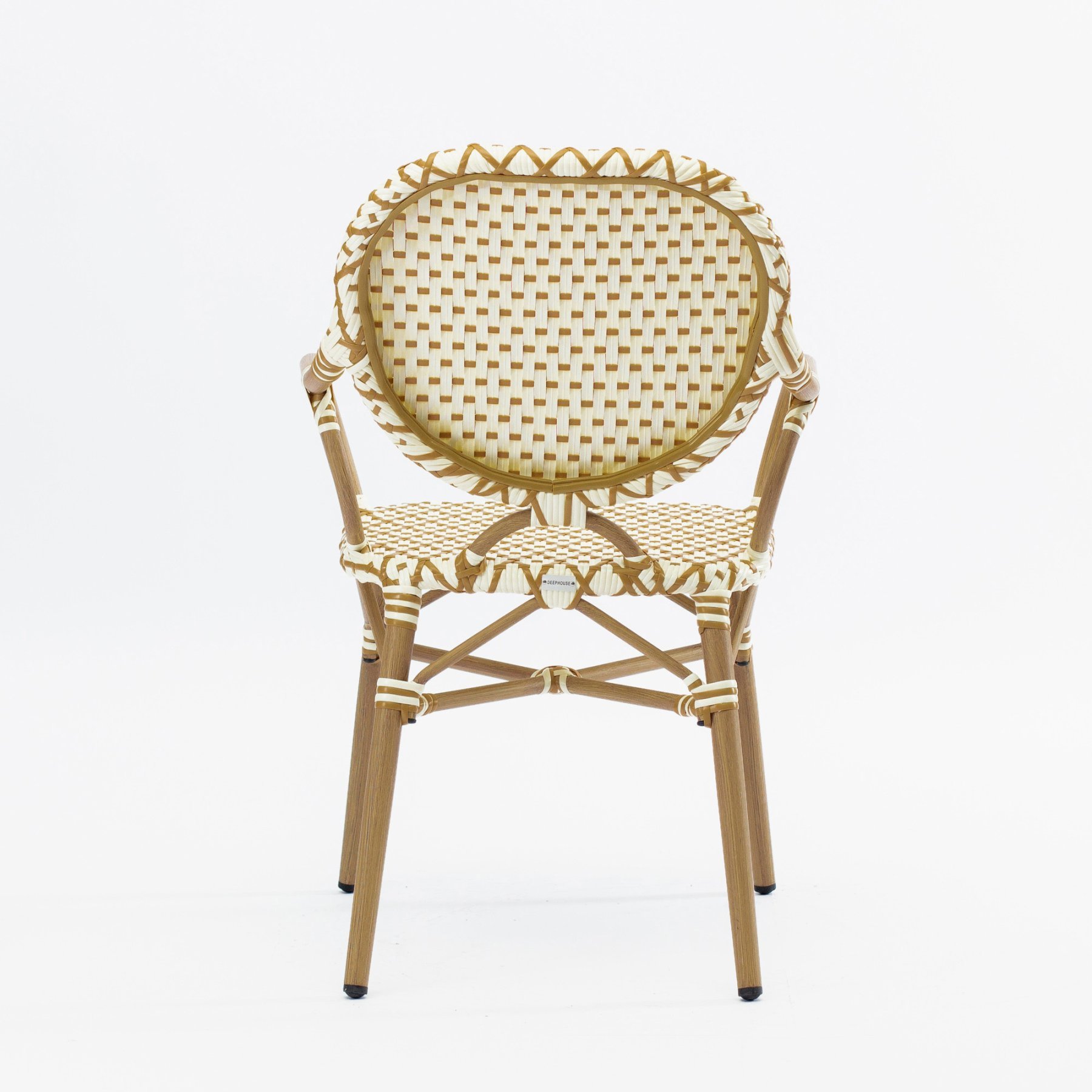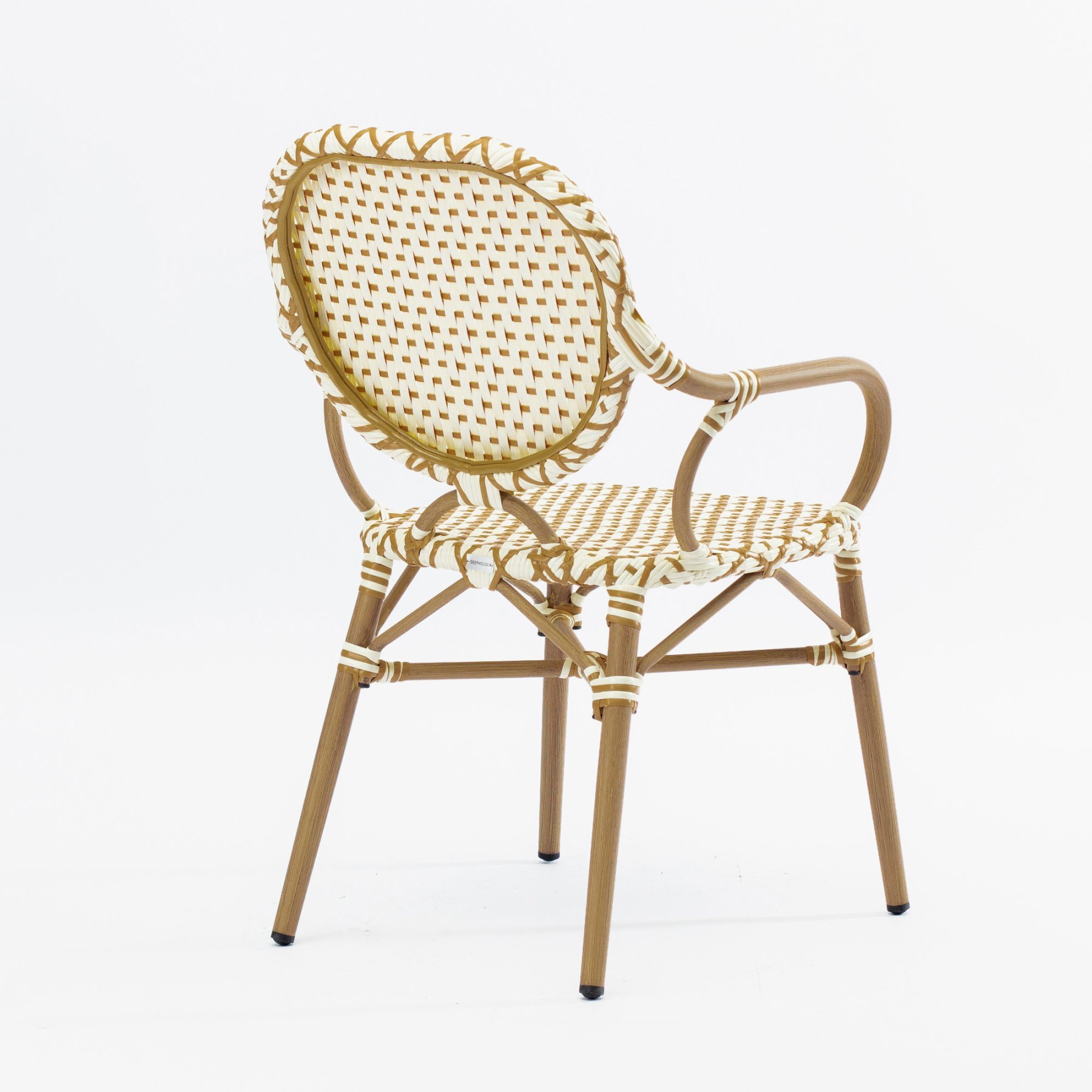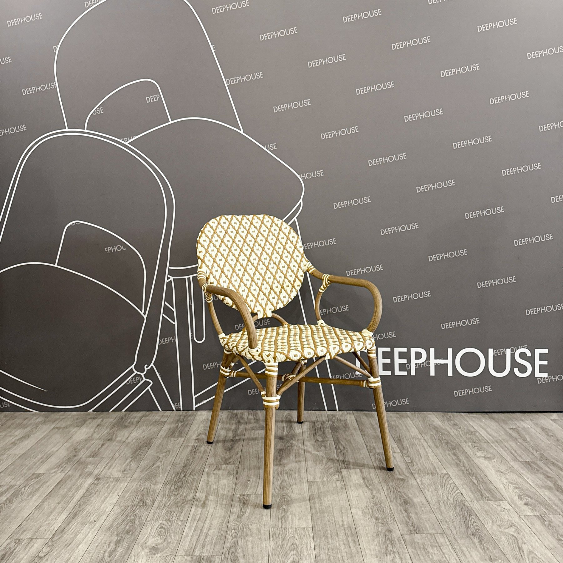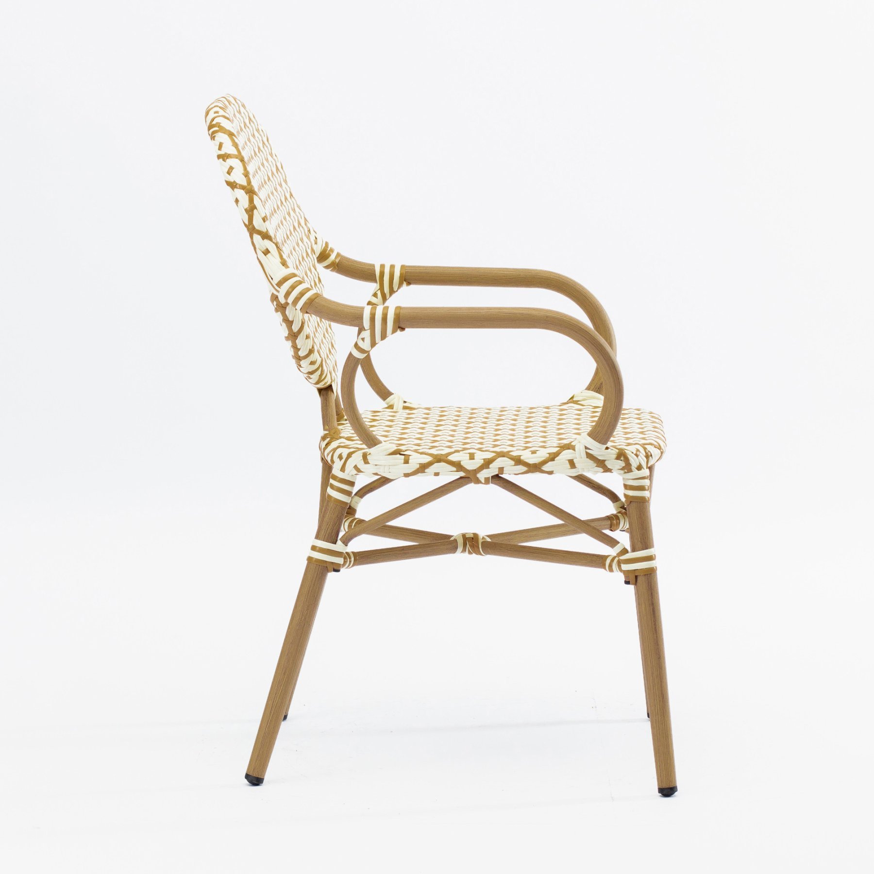 - Стул Маре с подлокотниками плетеный искусственный ротанг бежево-желтый ножки металл коричневые