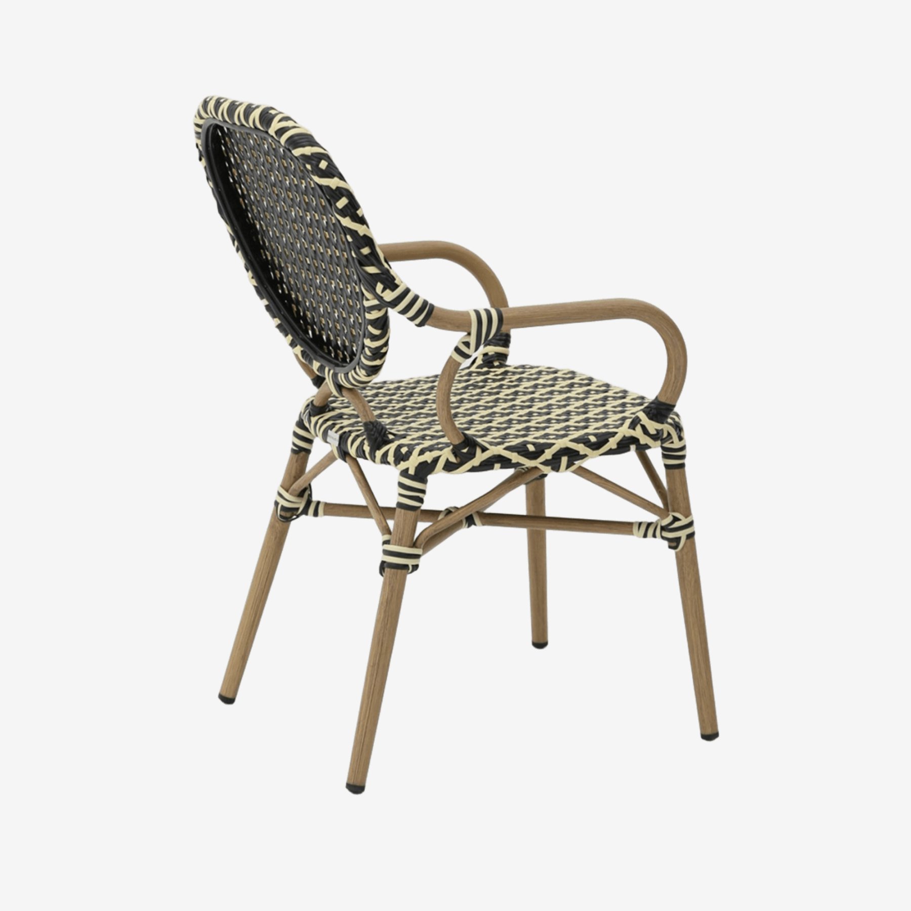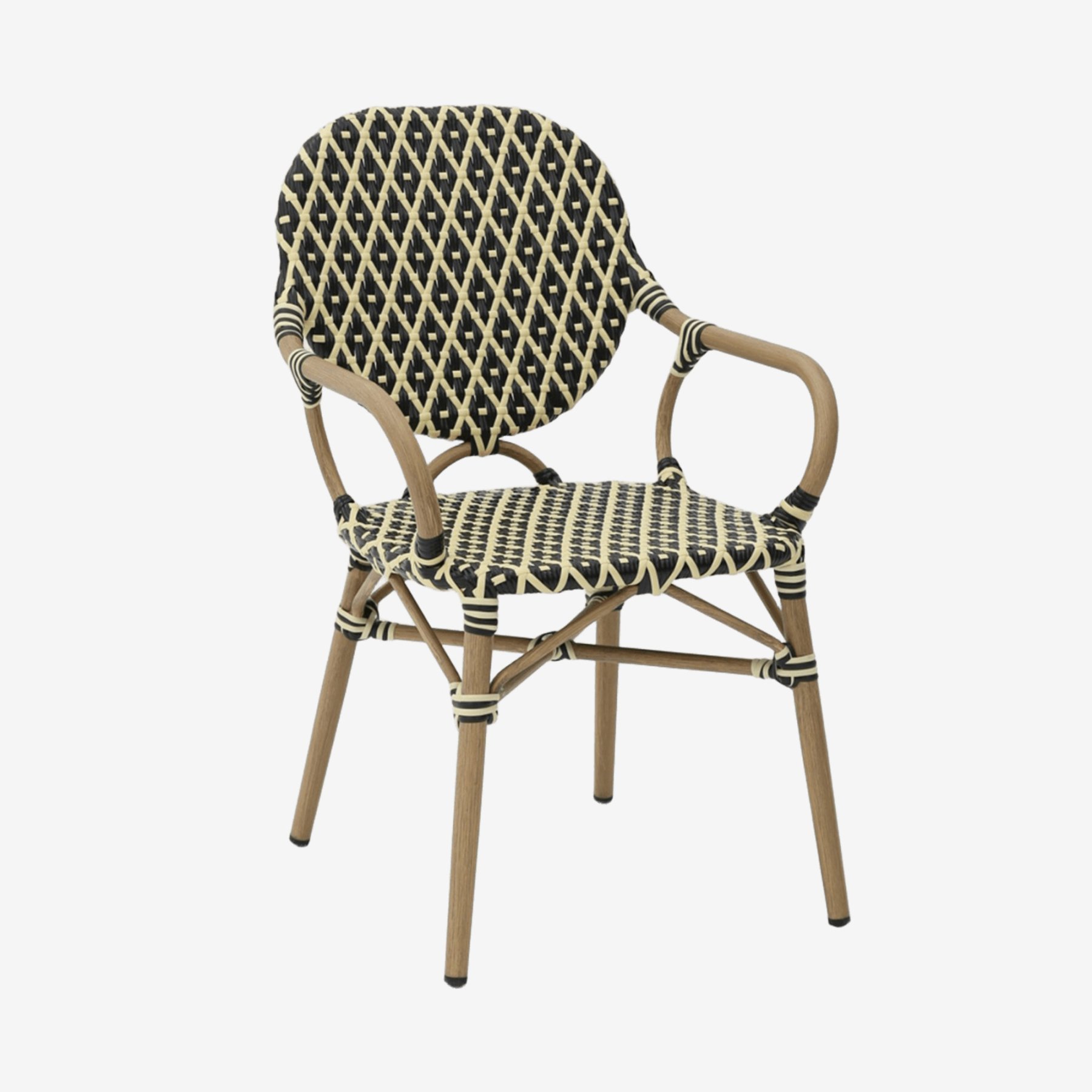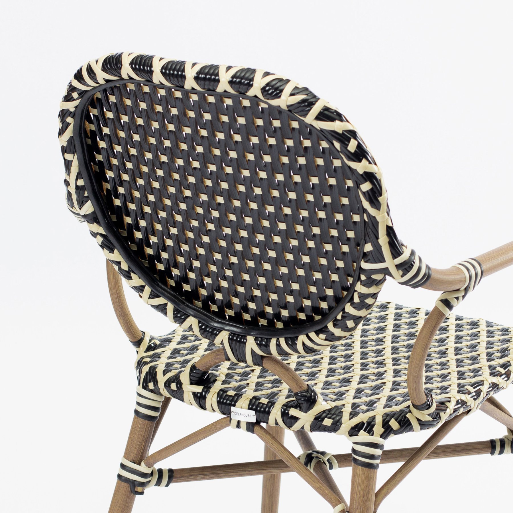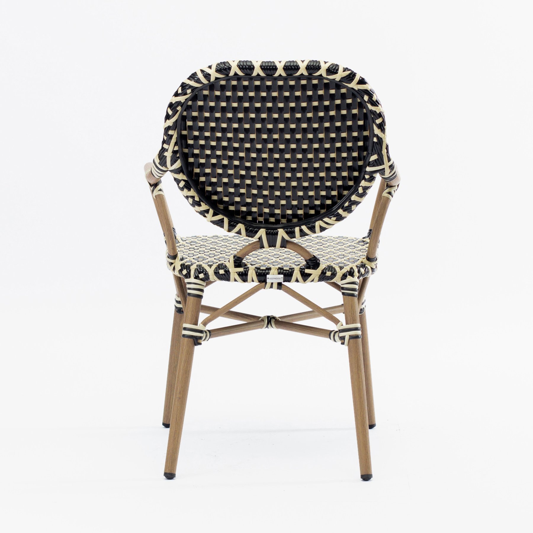 - Стул Маре с подлокотниками плетеный искусственный ротанг черно-бежевый ножки металл коричневые