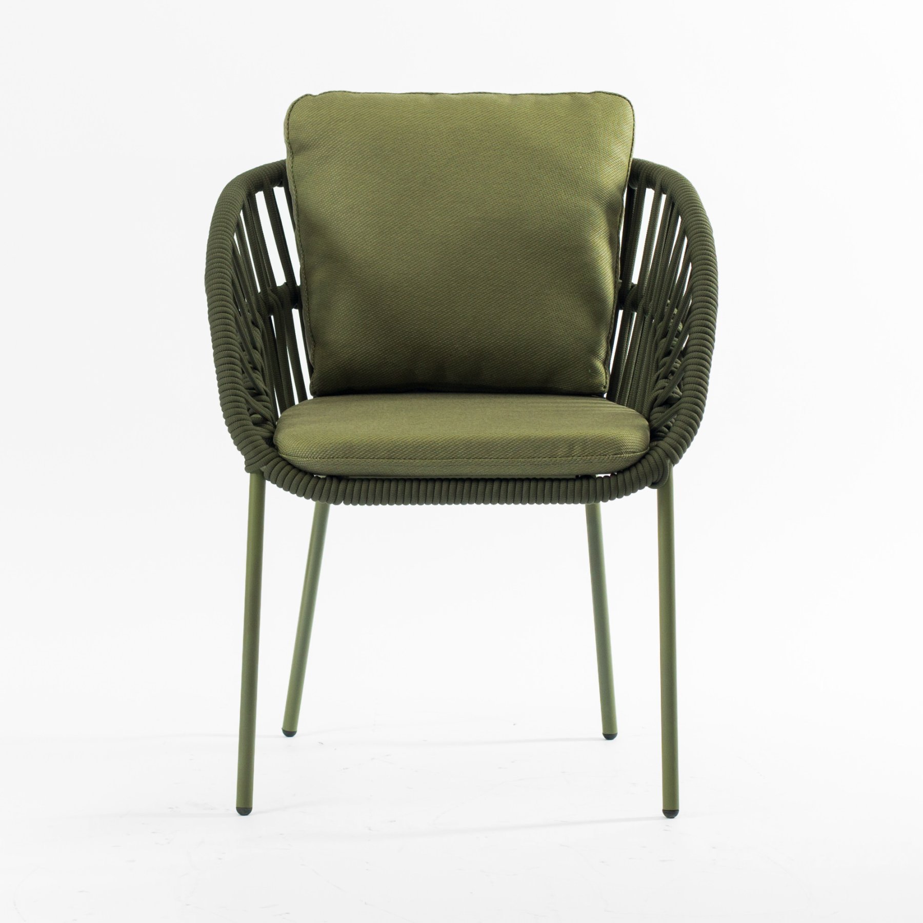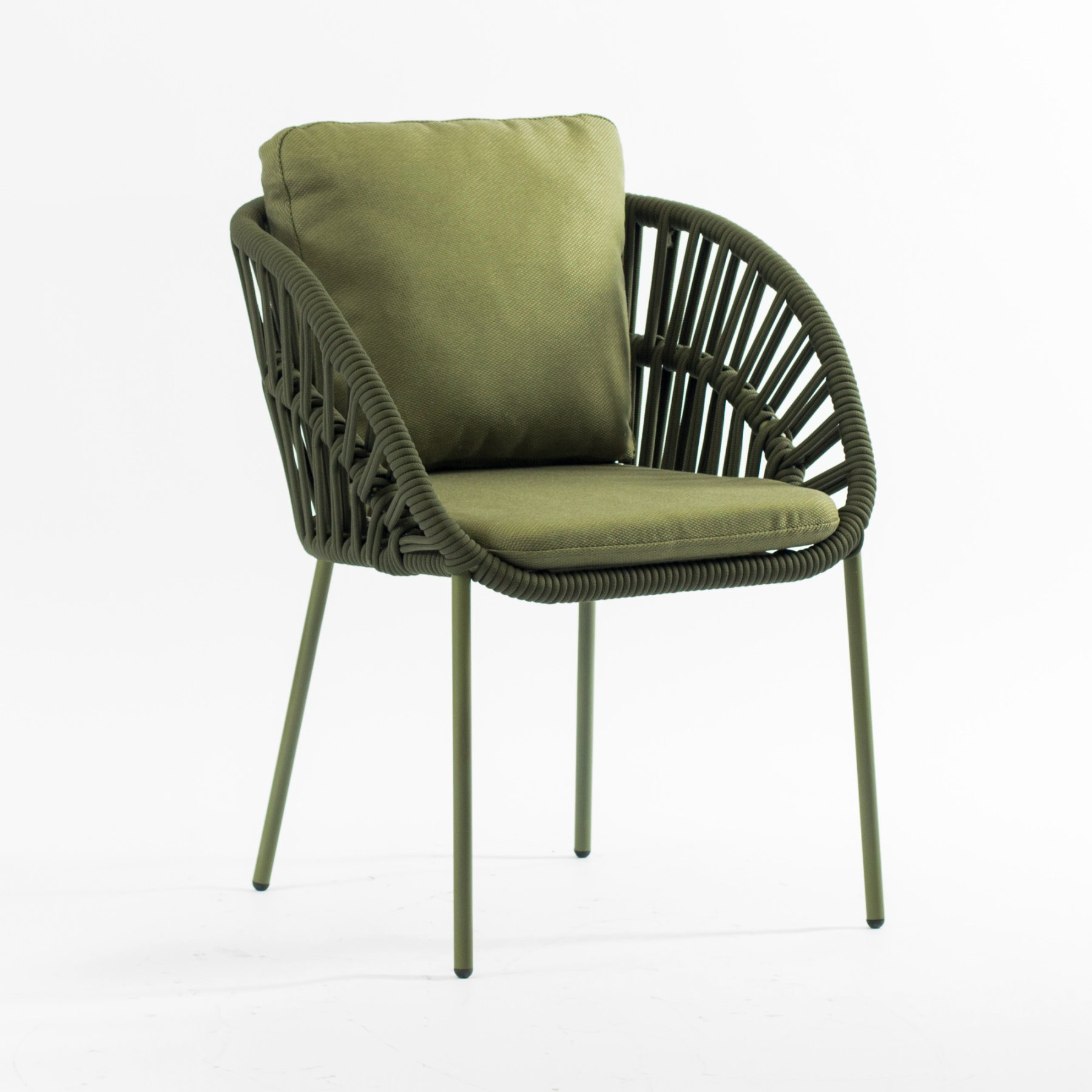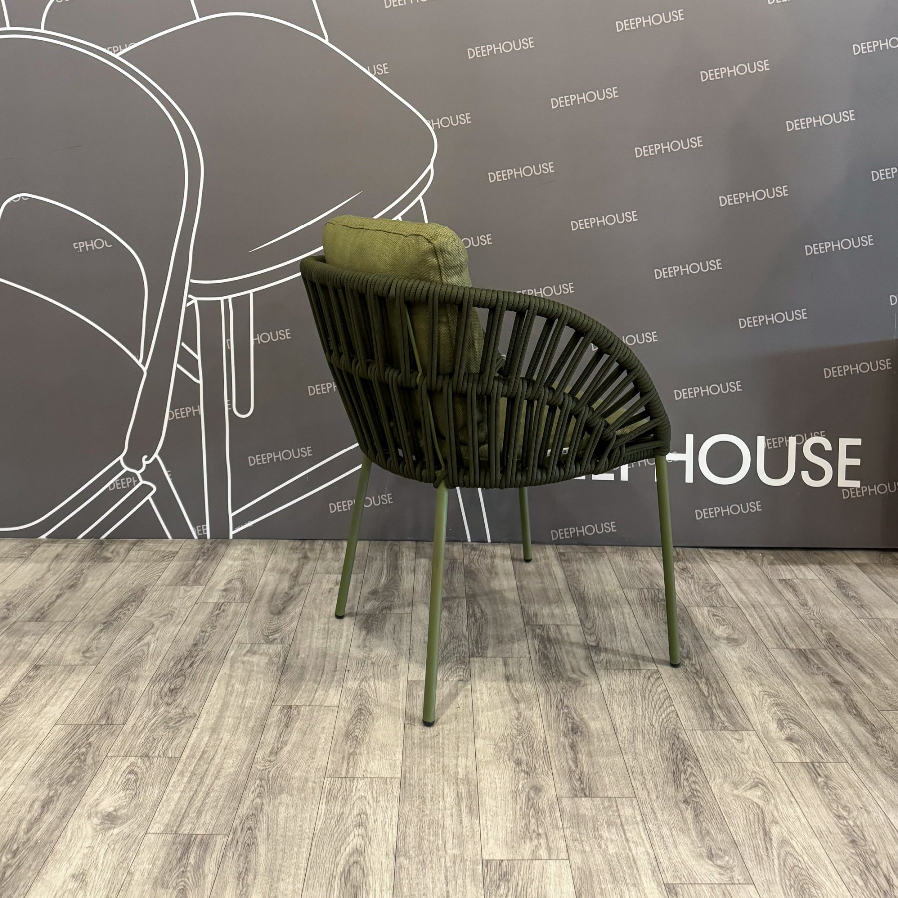 - Стул Палермо плетеный зеленый ножки металл зеленый 2 подушки зеленые