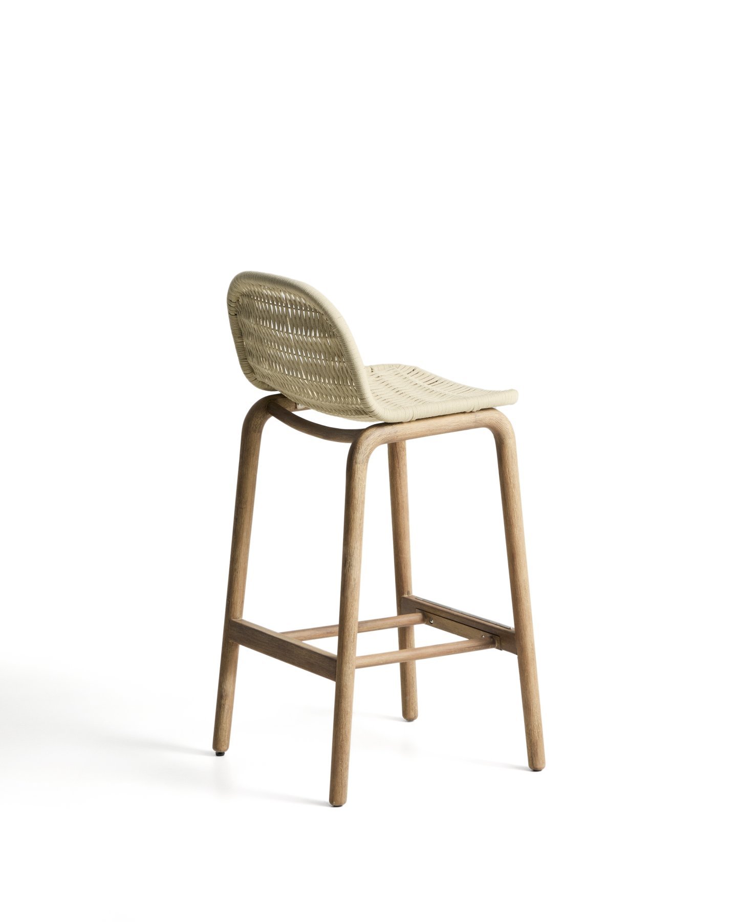 - Уличный барный стул Alipa из акации и веревки цвета экрю, 75 см