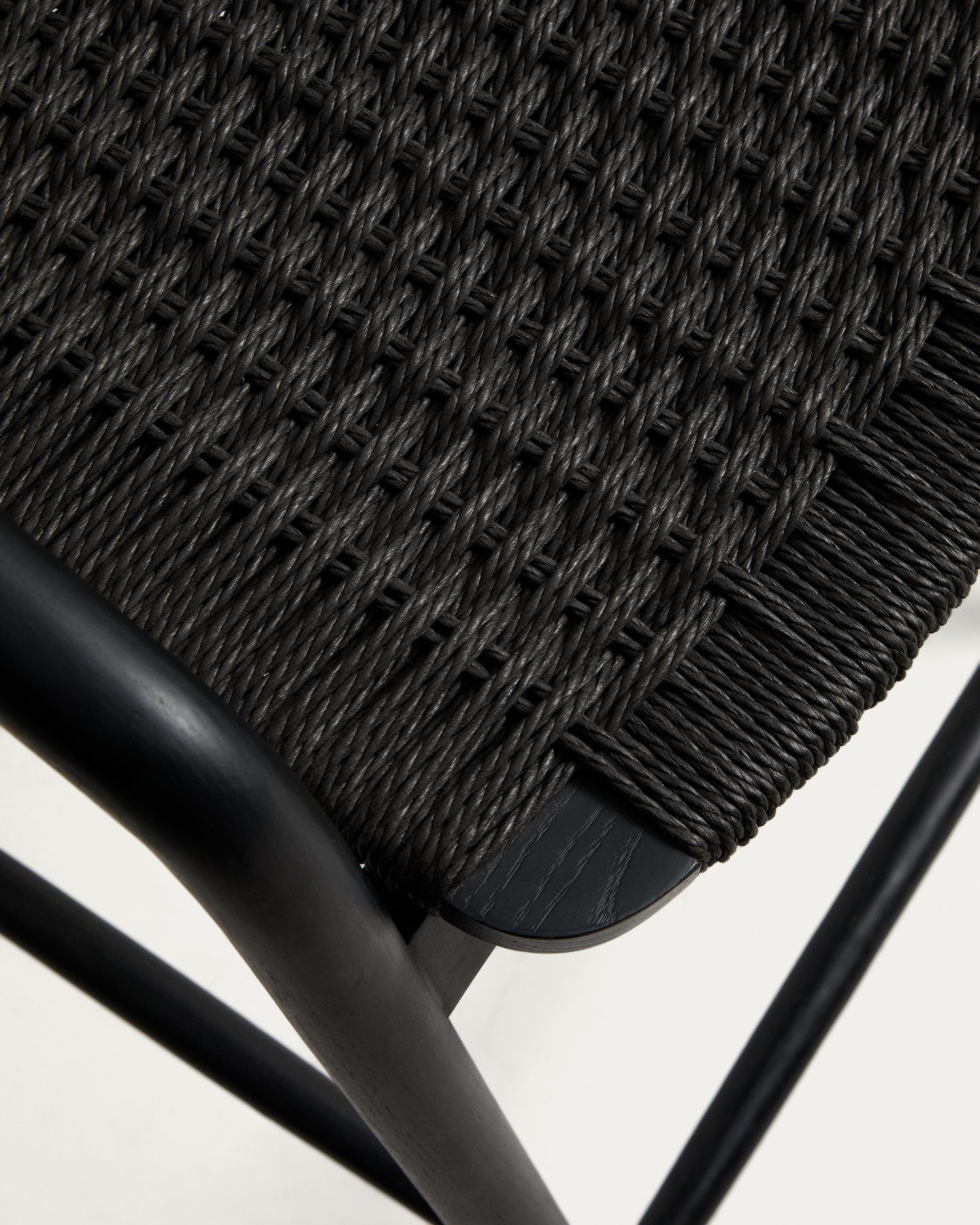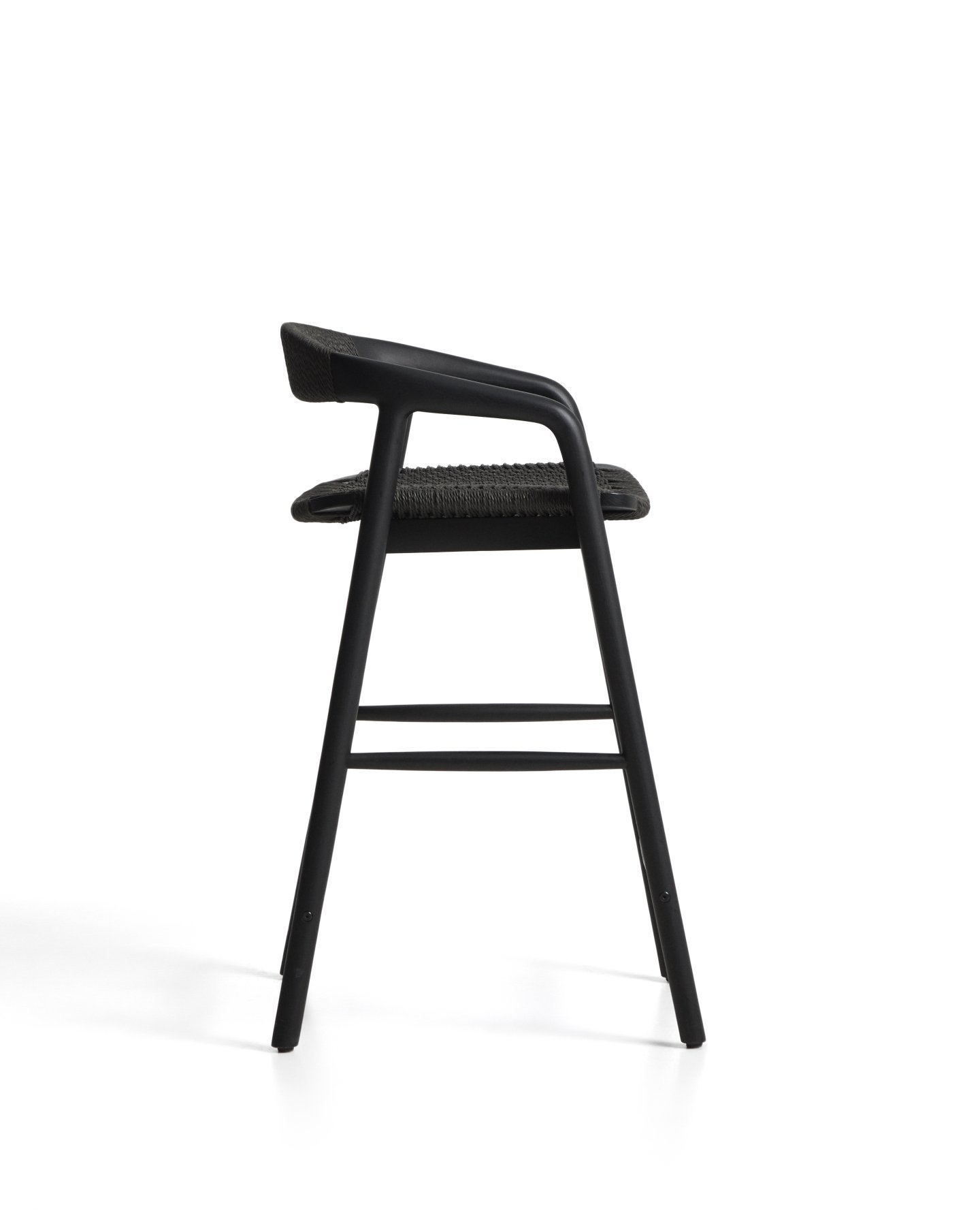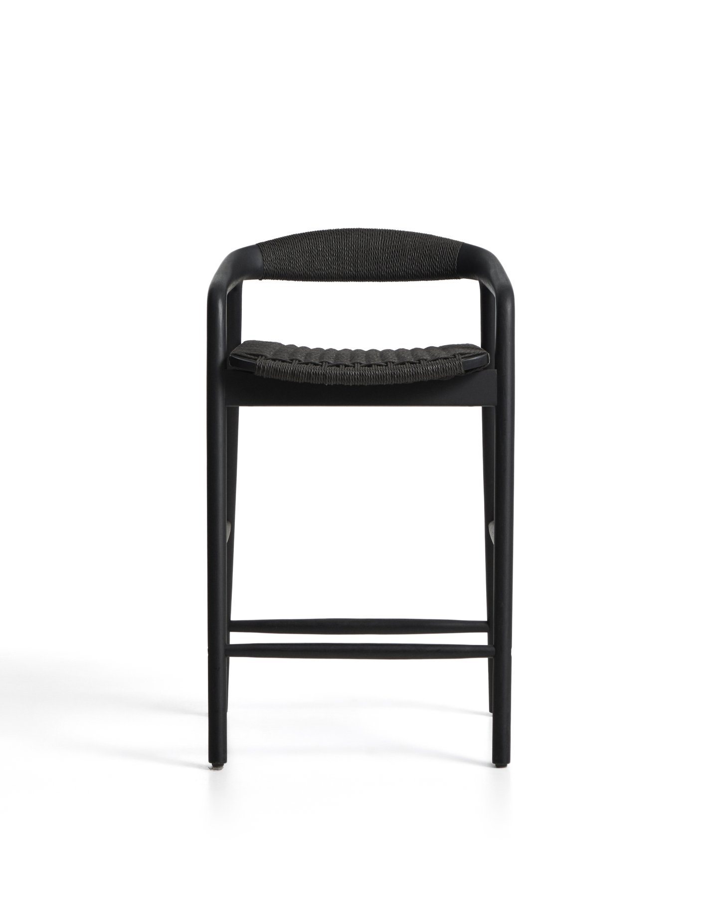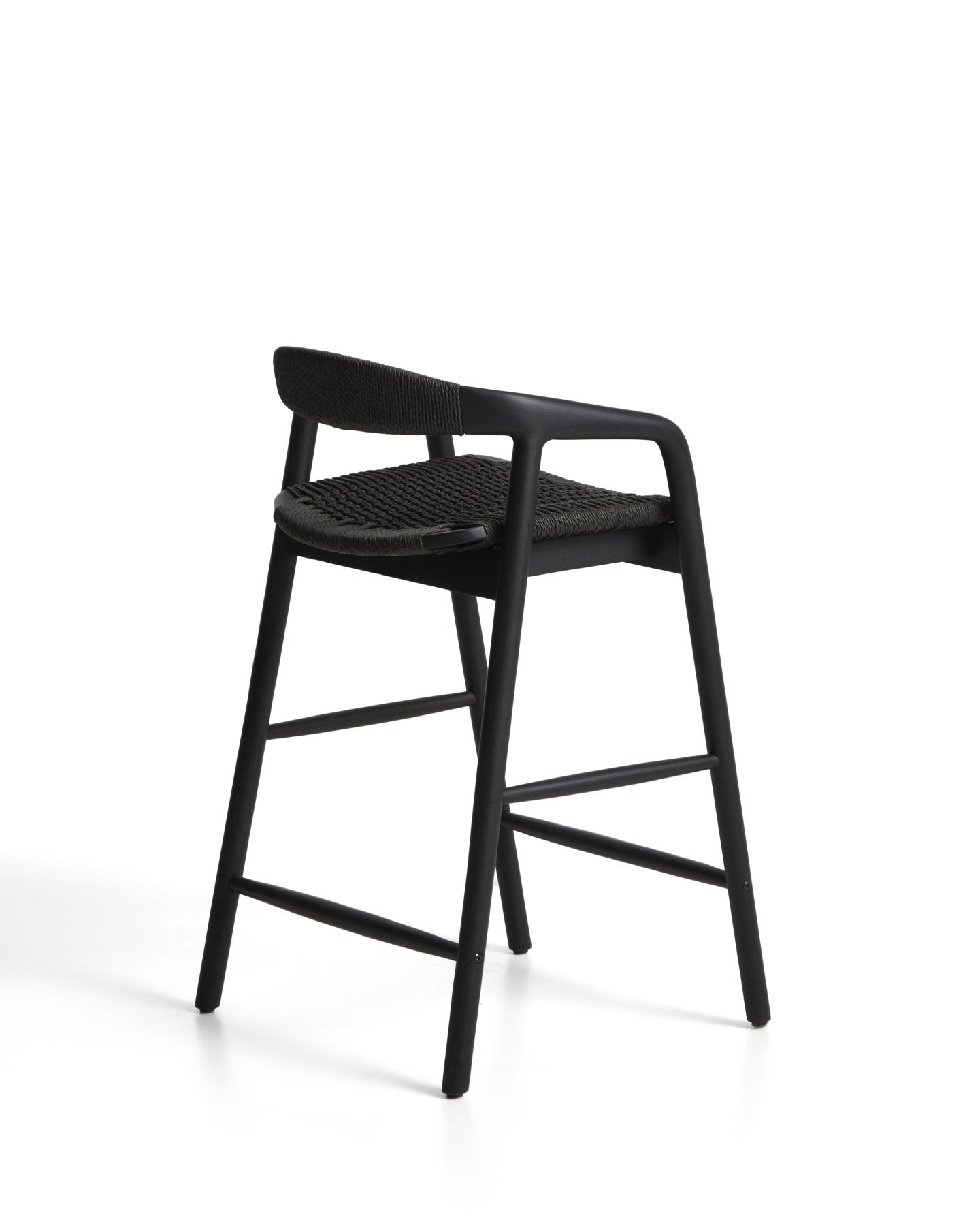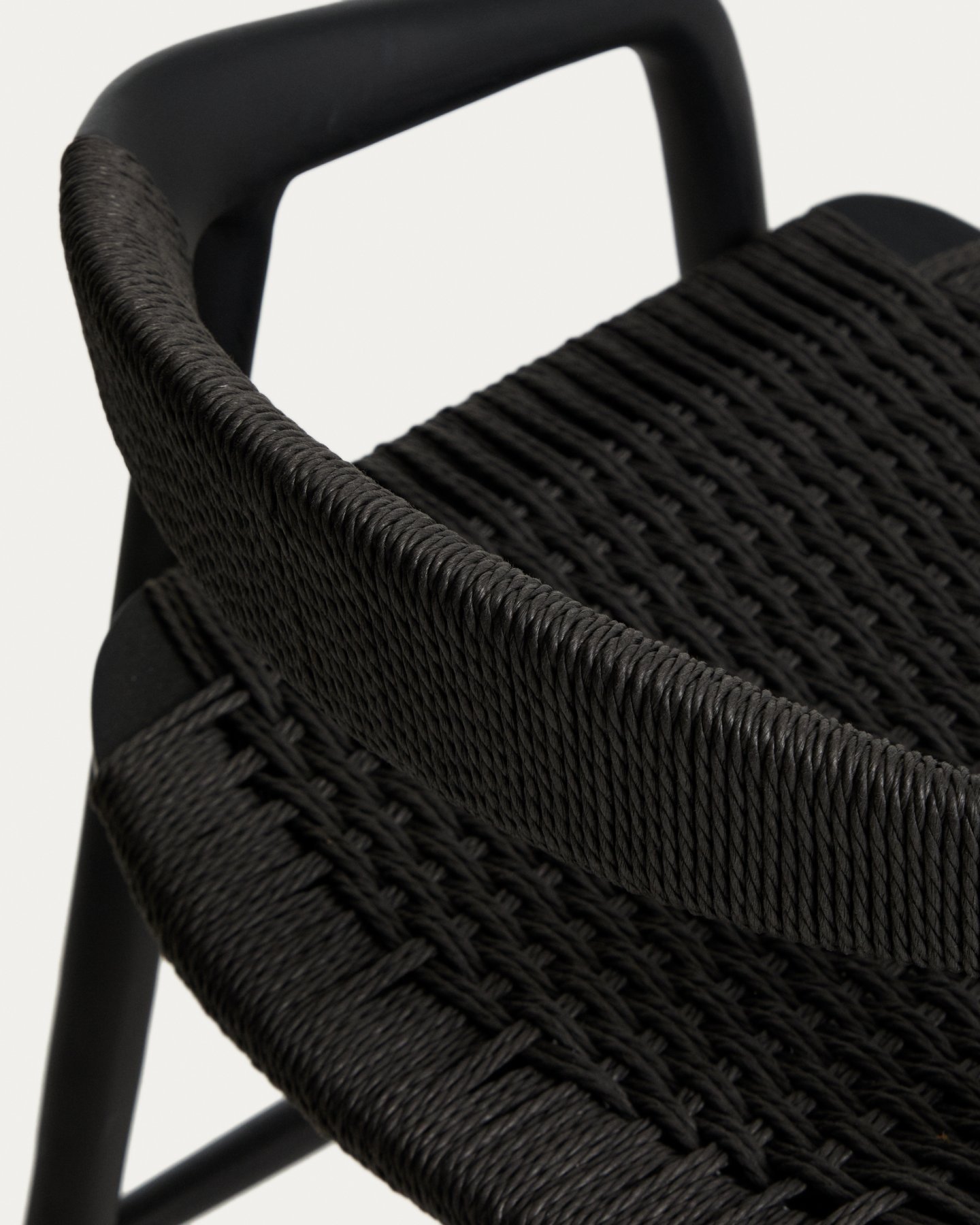 - Уличный полубарный стул Derile из массива дуба и веревки в черной отделке