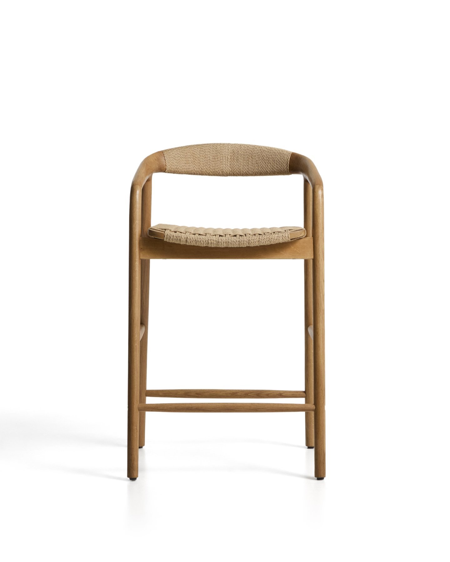 - Уличный полубарный стул Derile из массива дуба в натуральной отделке и бежевой веревки