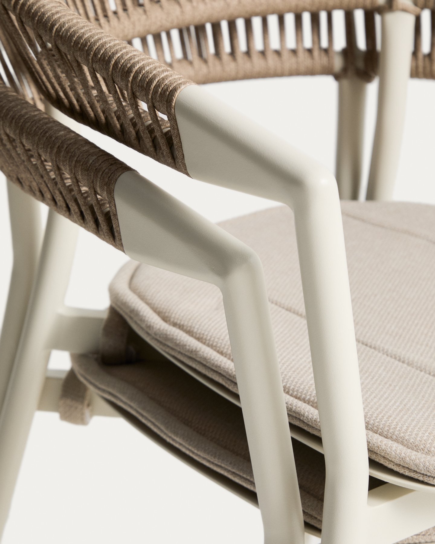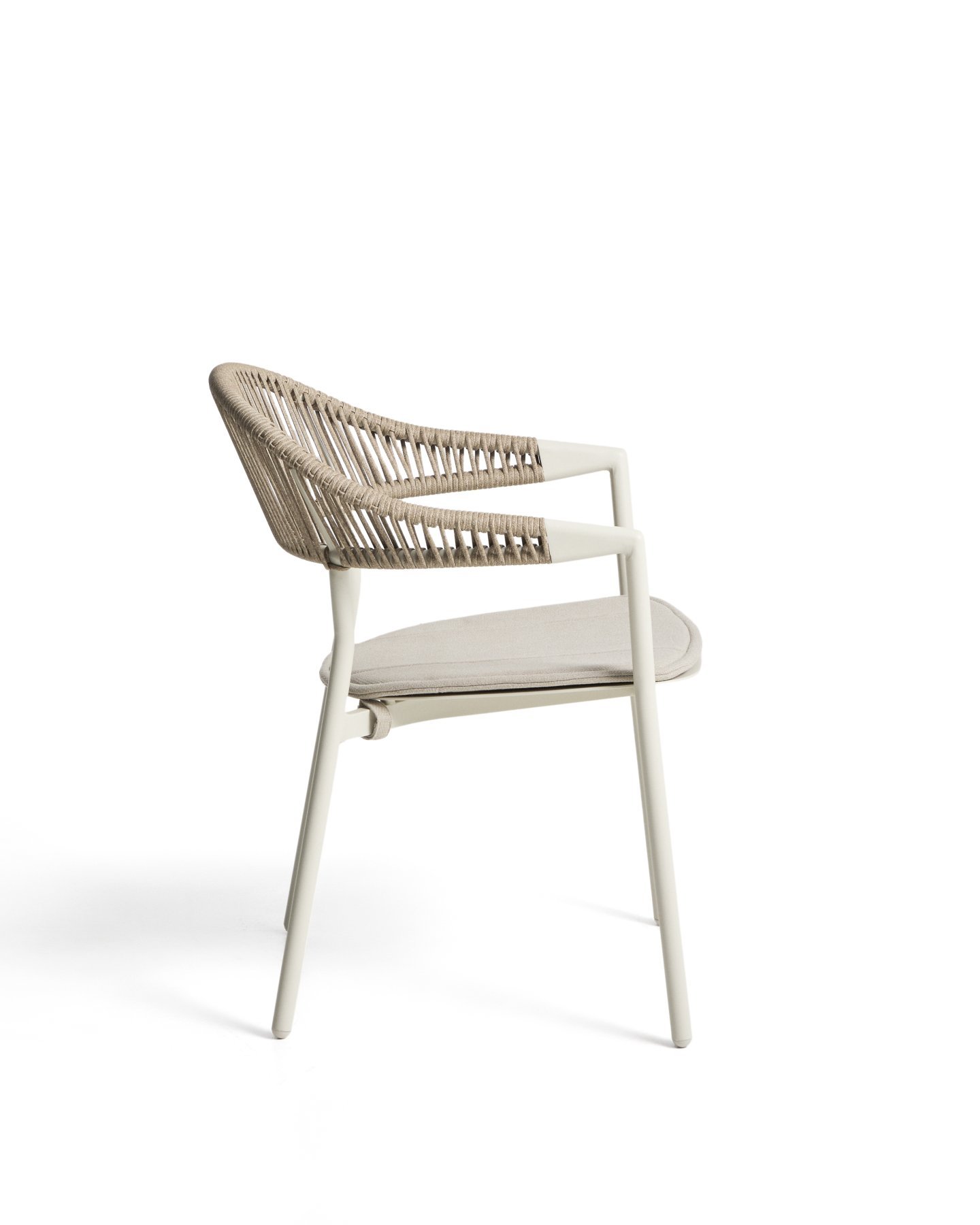 Стул Alimia сочетает в себе легкость и долговечность. Его алюминиевая структура устойчива к ржавчине, коррозии и воздействию солнца. Сплинка соткана вручную из синтетического шнура, добавляя текстуру и визуальный комфорт. Включает в себя подушку сиденья для дополнительного комфорта, которую мы рекомендуем хранить в дождливые дни. Его штабелируемая конструкция оптимизирует пространство, когда он не используется, а ножки оснащены пластиковыми ограждениями, которые помогают защитить пол и поддерживать поверхности в хорошем состоянии.