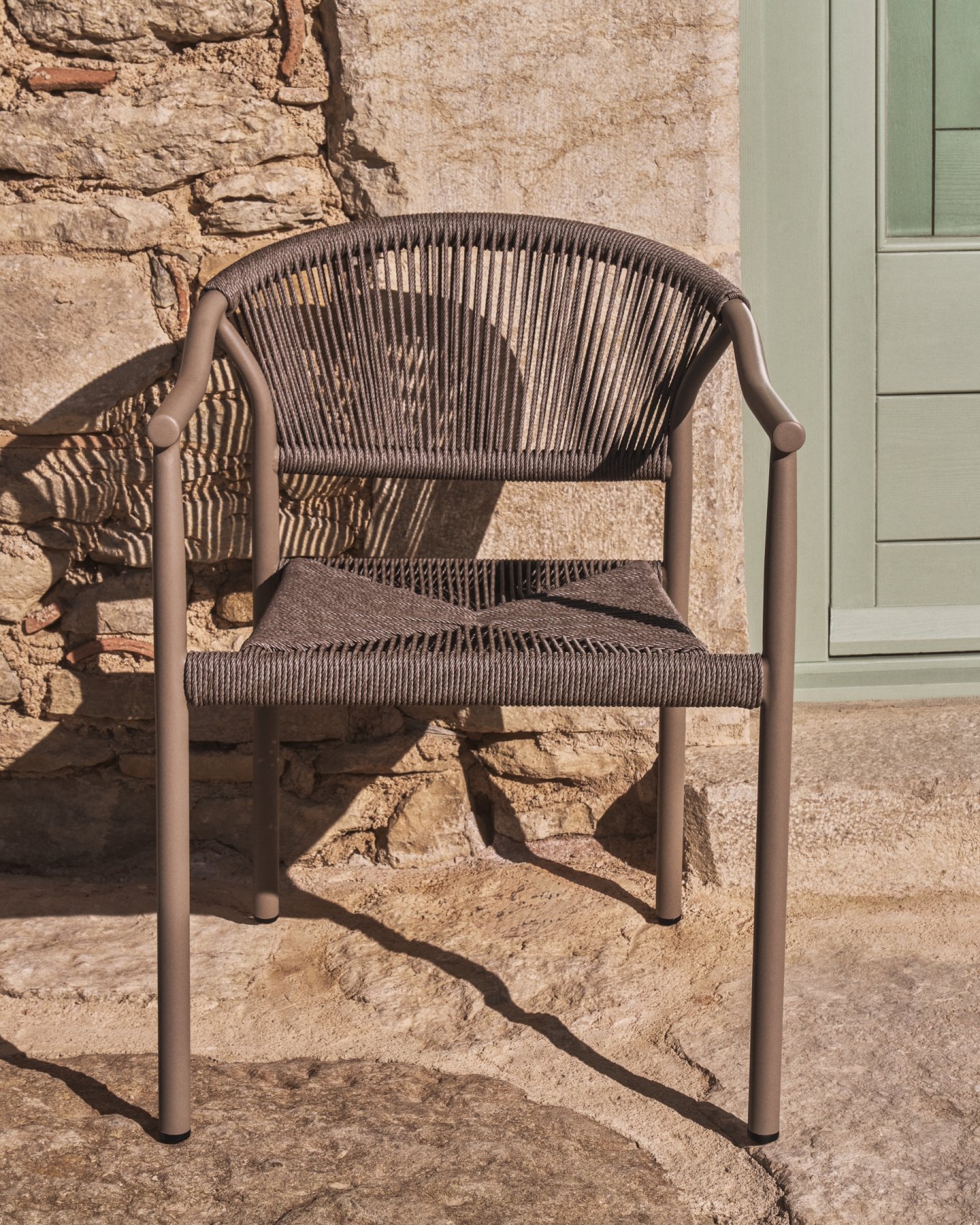 Стул Livadia — это универсальный и вневременной предмет мебели, созданный для использования как в помещении, так и на открытом воздухе. Его алюминиевая конструкция сочетает в себе легкость и прочность, сохраняя свой внешний вид устойчивым к ржавчине, коррозии и ультрафиолетовым лучам. Спинка и сиденье сплетены вручную из синтетического шнура, что обеспечивает текстуру и комфорт. Штабелируемая конструкция позволяет легко хранить стул, когда он не используется, а защитные накладки на ножках предохраняют пол.